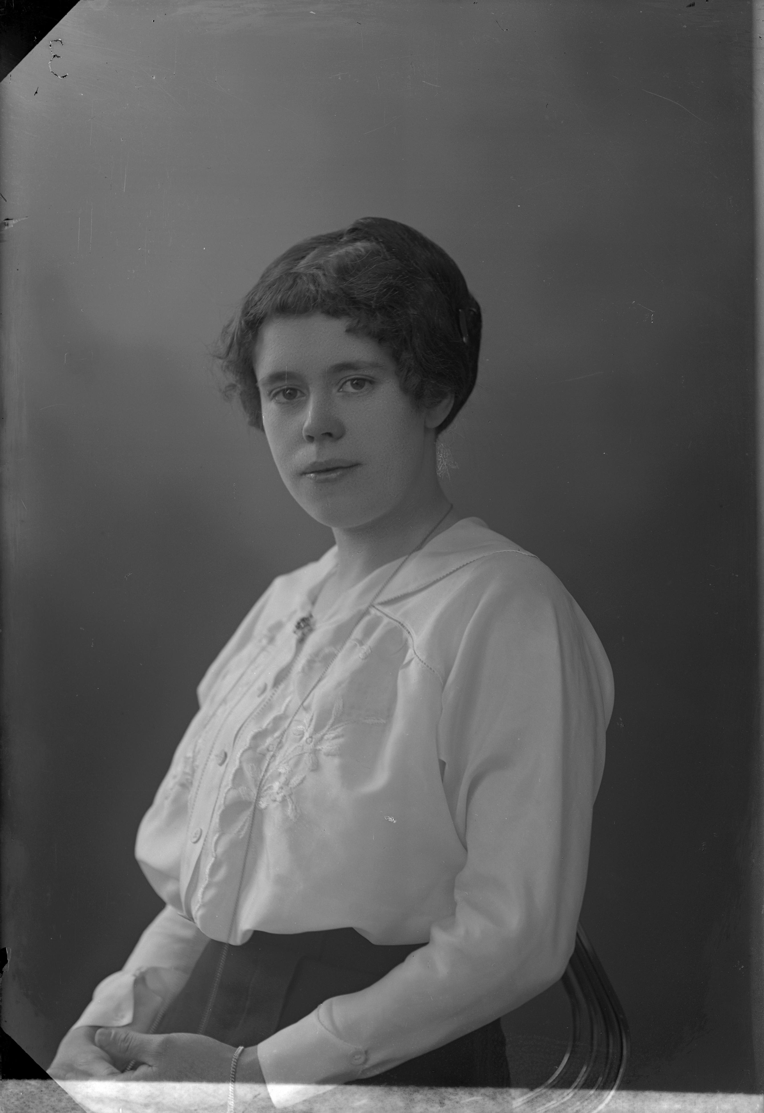 Beskrivning: Porträtt i halvfigur av fröken Askenlöf.