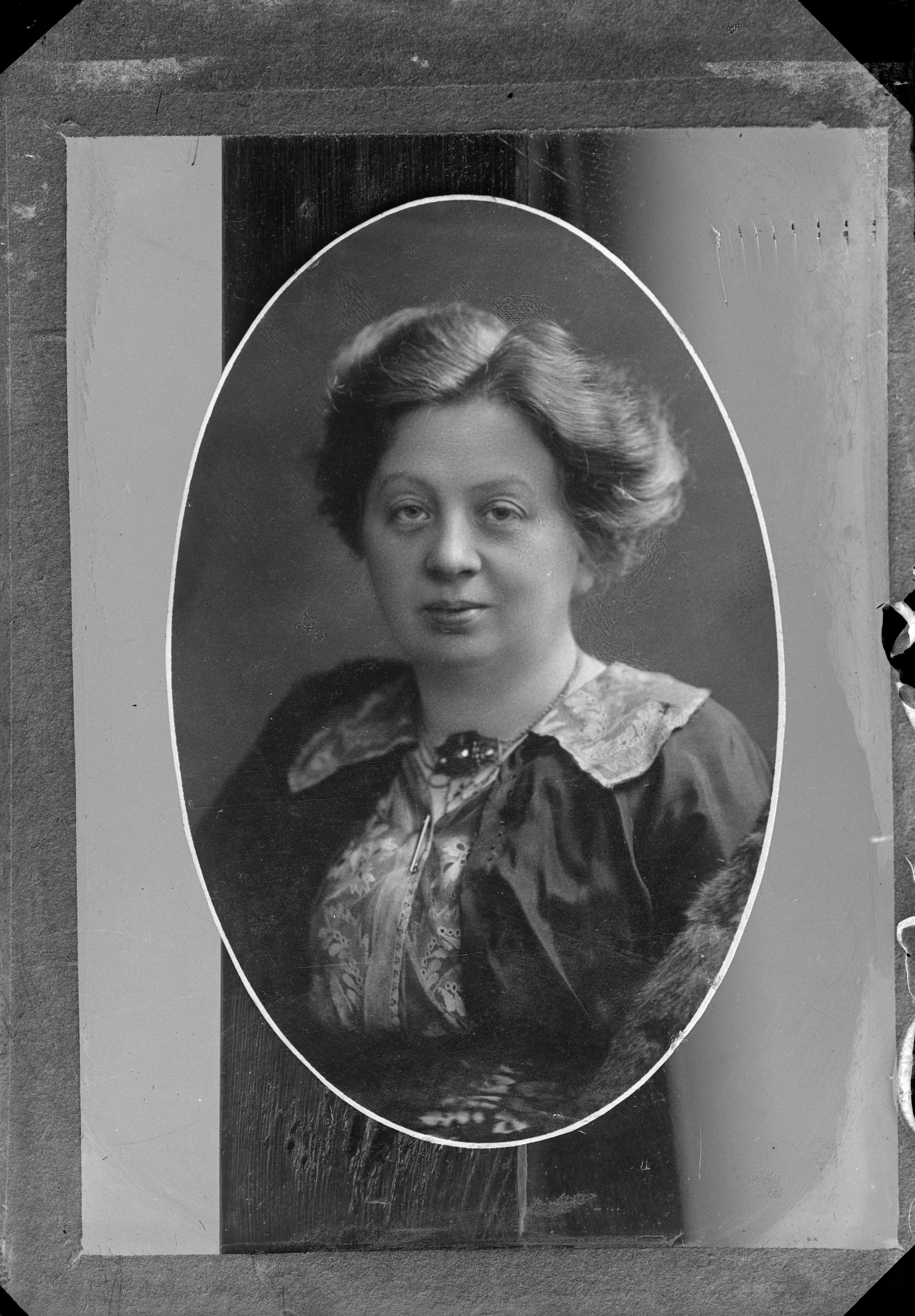 Porträtt i halvfigur av lärarinnan Amalia (Malin) Ingers, född Holmström, gift med fil. dr. Enok Ingers (1870-1951).