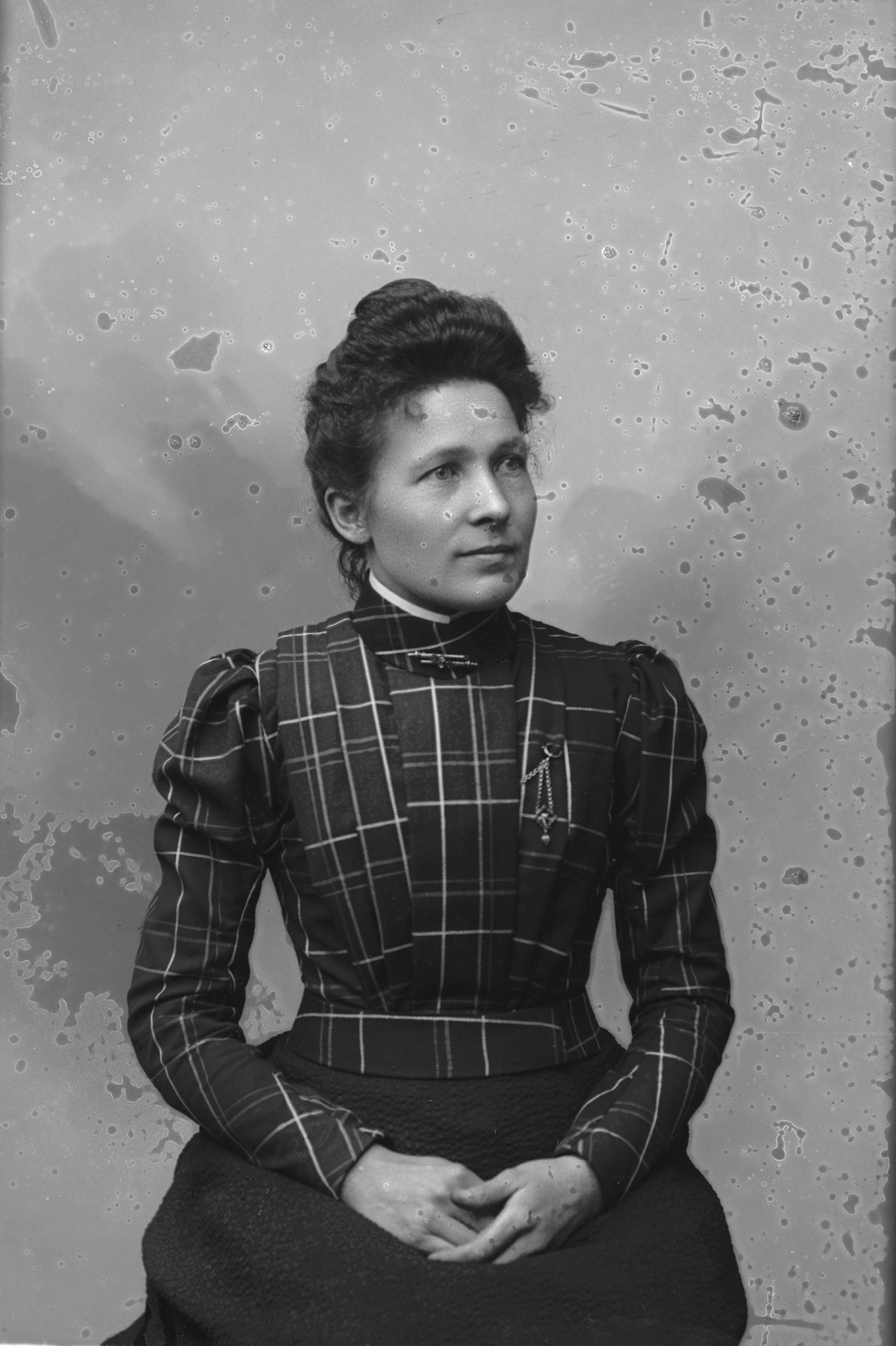 Beskrivning: Porträtt i halvfigur av Karna Templin.