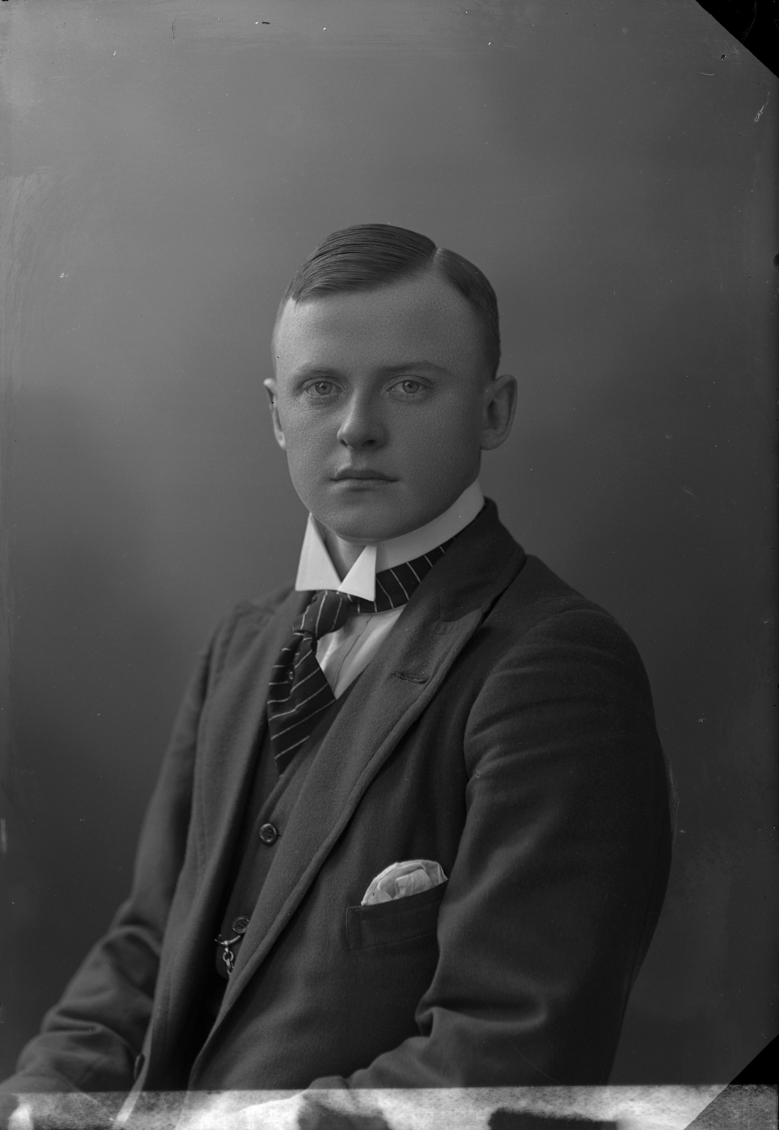 Beskrivning: Porträtt i halvfigur av Olof Nilsson.