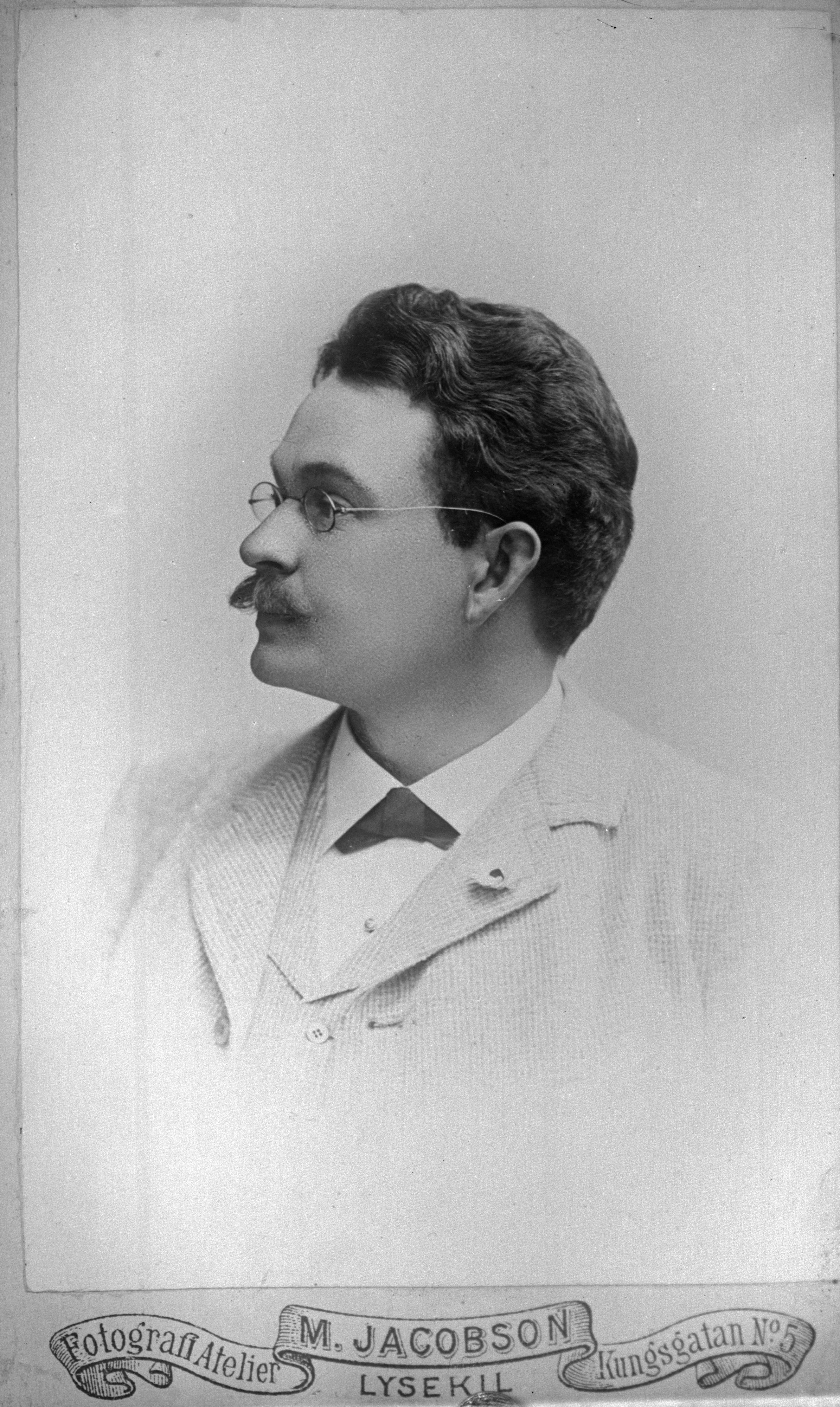 Porträtt i halvfigur, profil, av apotekare Julius Bergman.