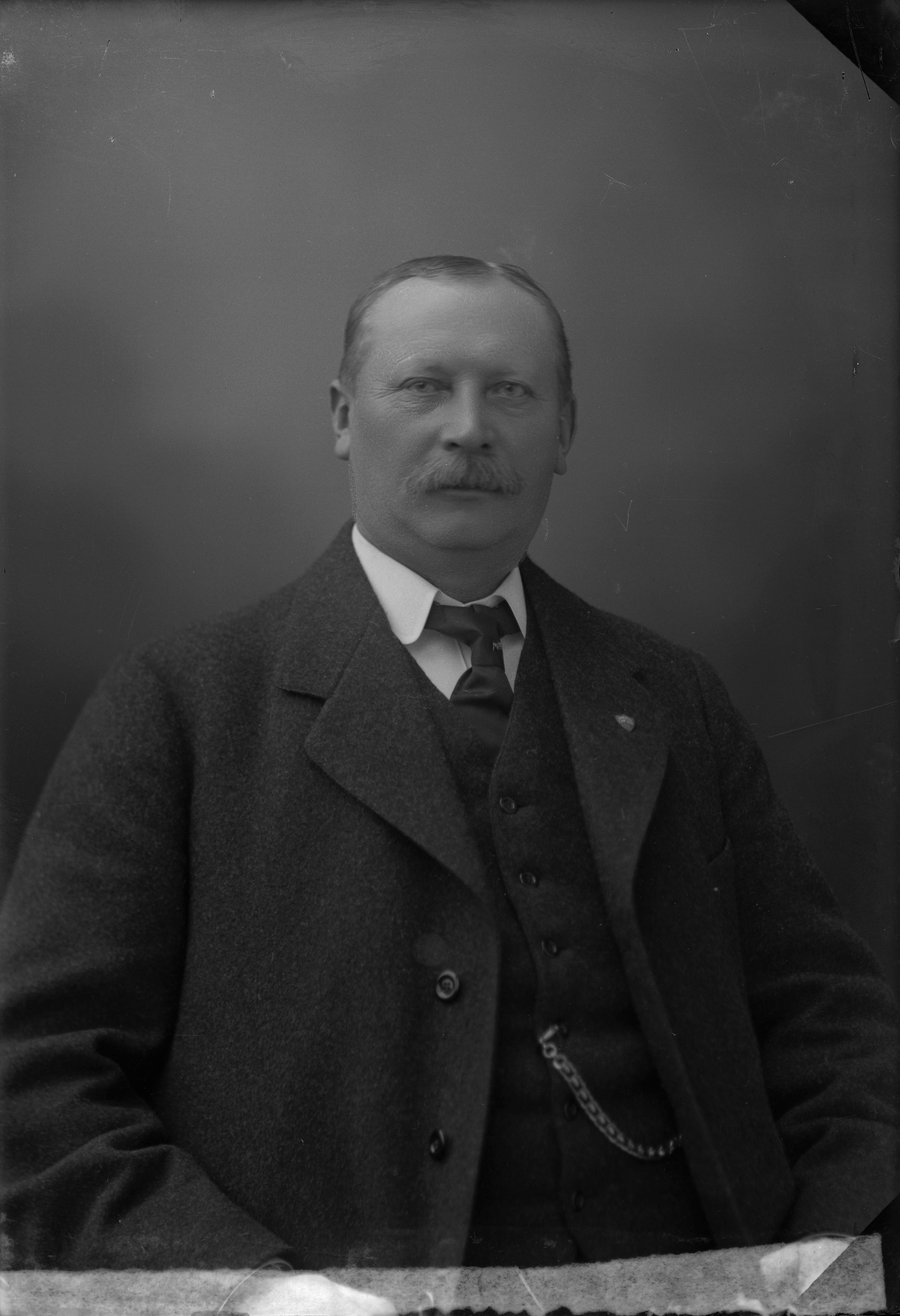 Beskrivning: Porträtt i halvfigur av brukspatron Nilsson.