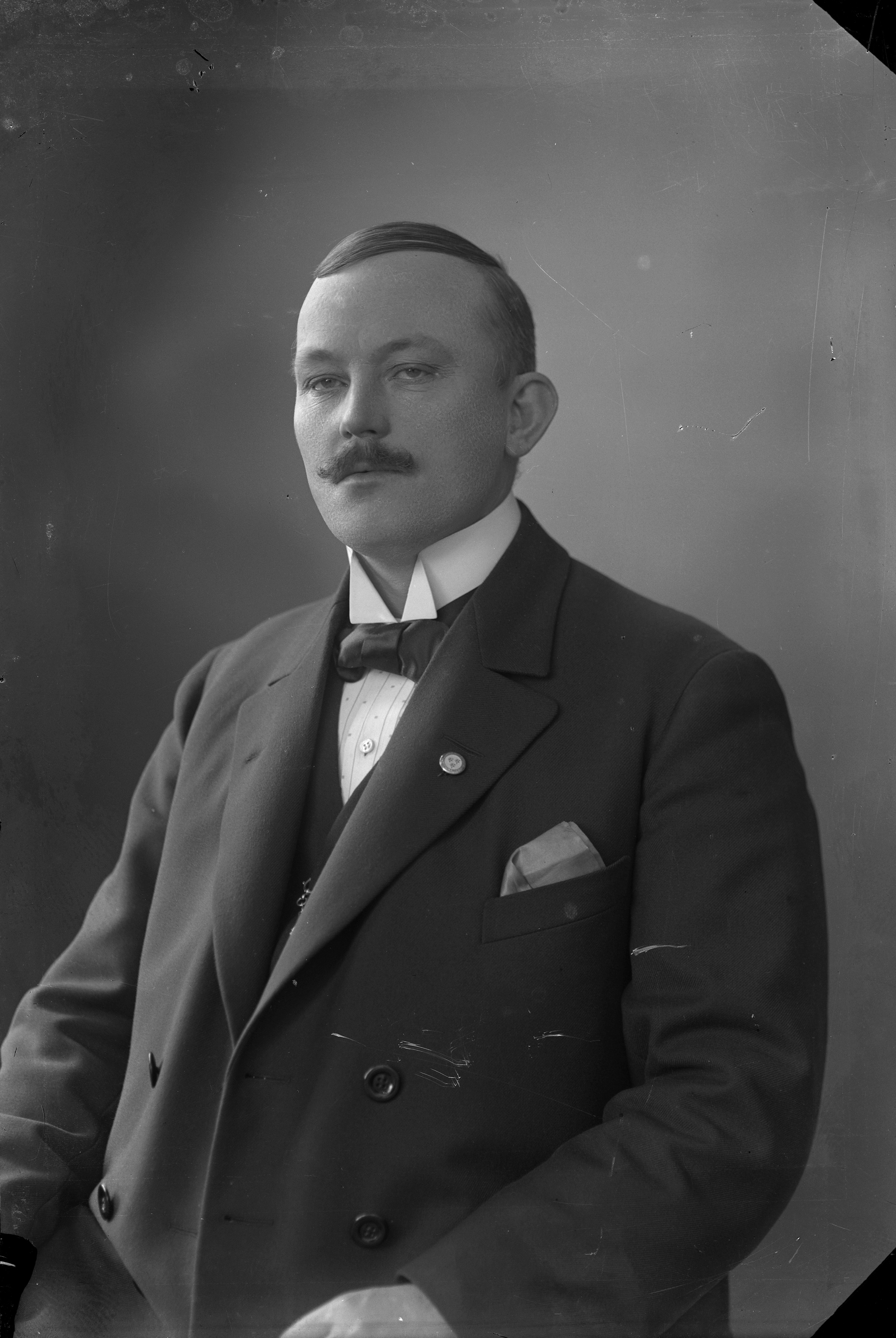 Beskrivning: Porträtt i halvfigur av handelsmannen Carl August Lång.