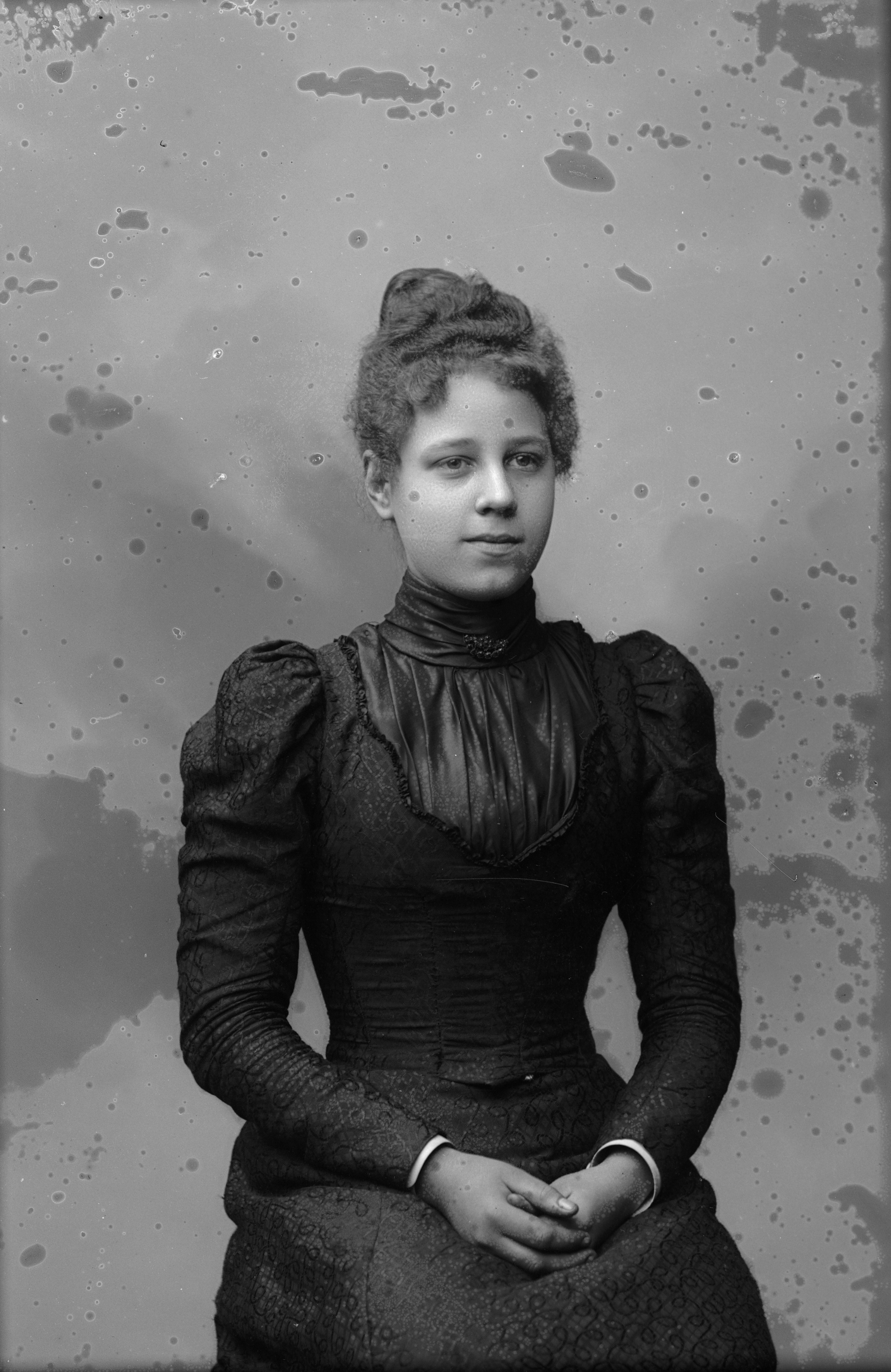 Beskrivning: Porträtt i halvfigur av Gerda Lamberg.