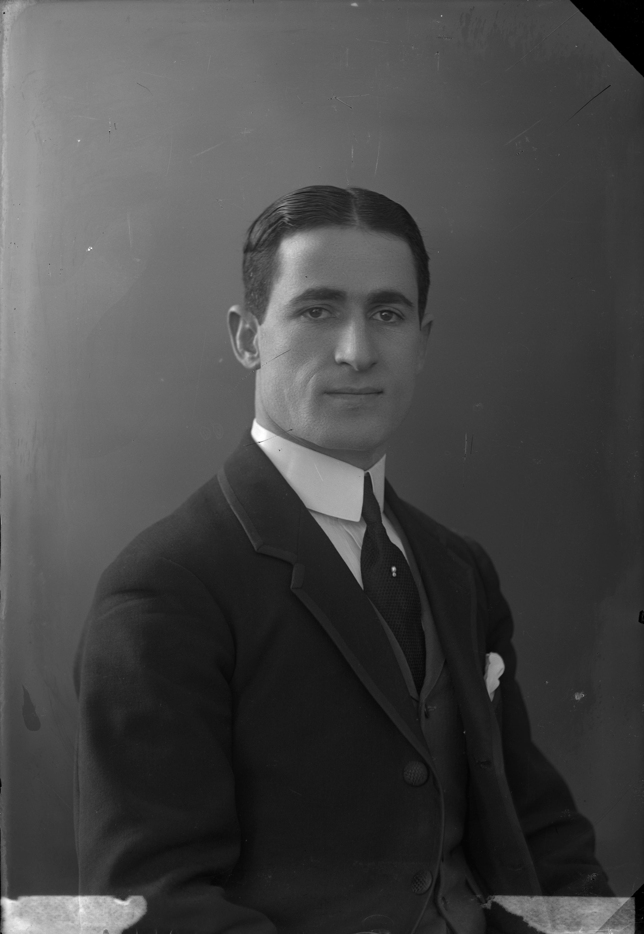 Beskrivning: Porträtt i halvfigur av J. B. Nässim. [Namn otydligt.]