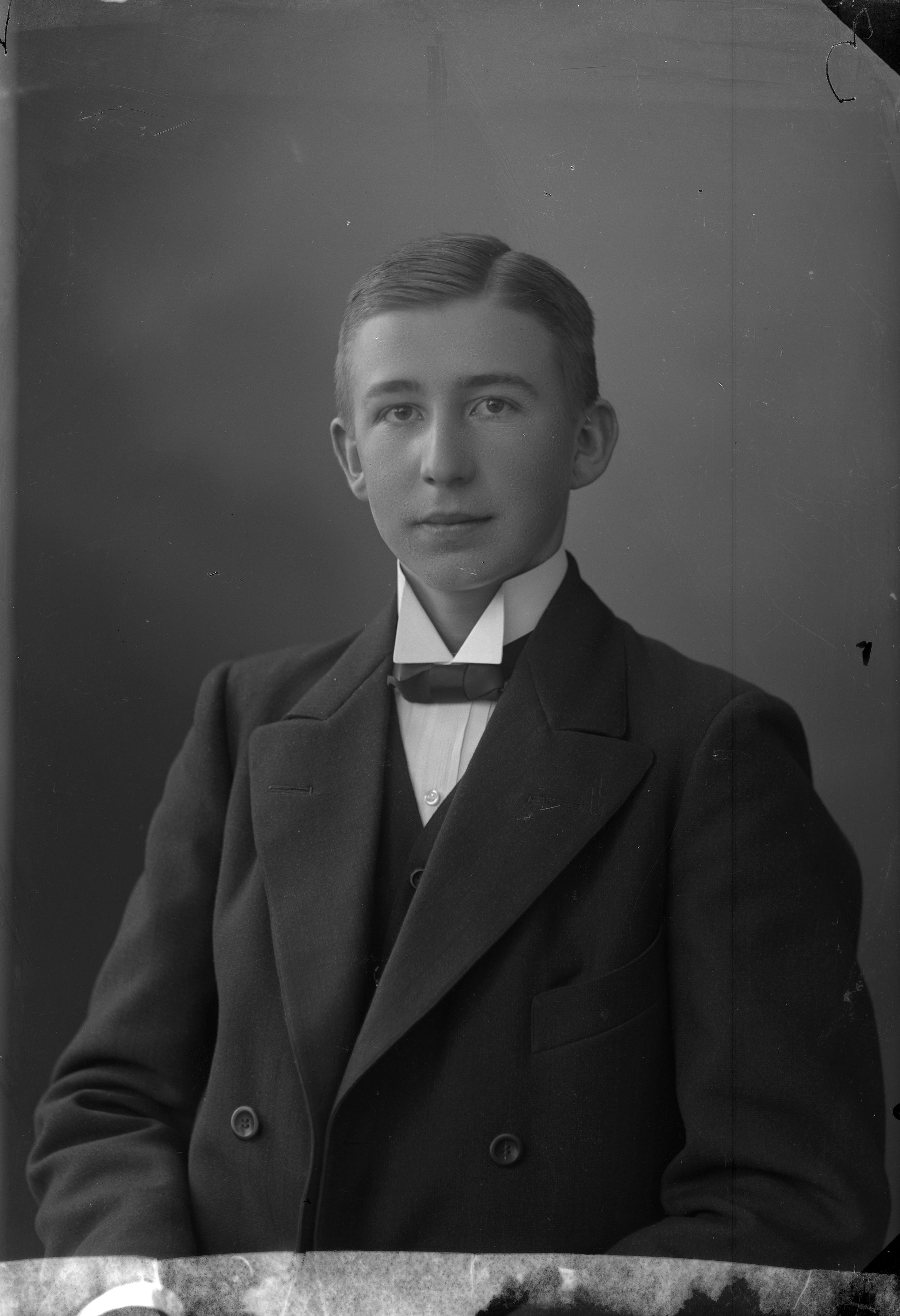 Beskrivning: Porträtt i halvfigur av Elof Larsson.