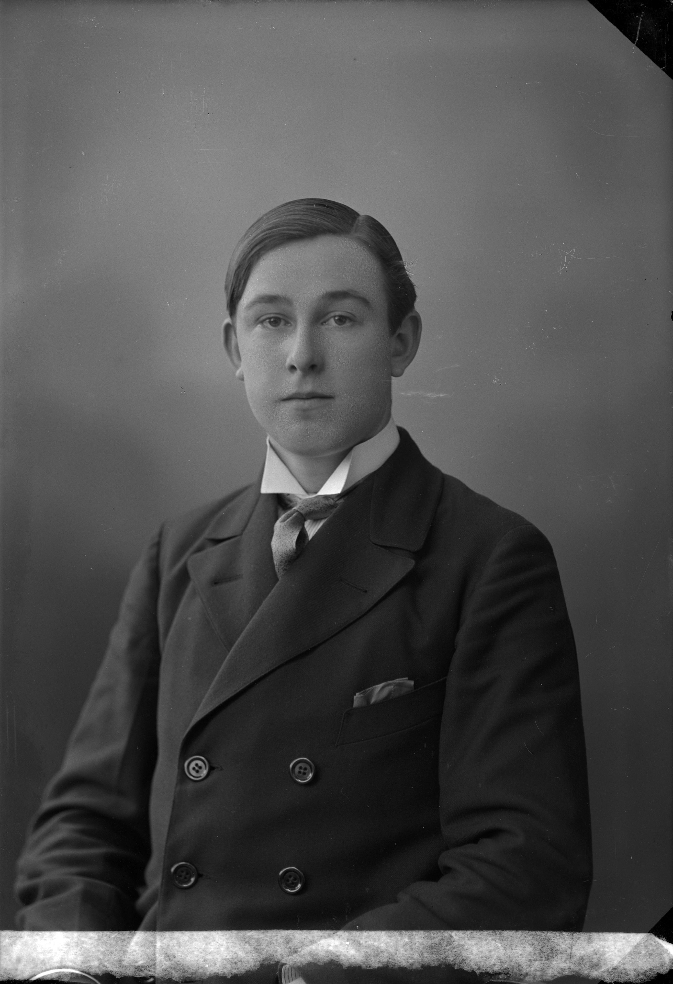 Beskrivning: Porträtt i halvfigur av Alb. Nilsson. [Albin /Albert?]