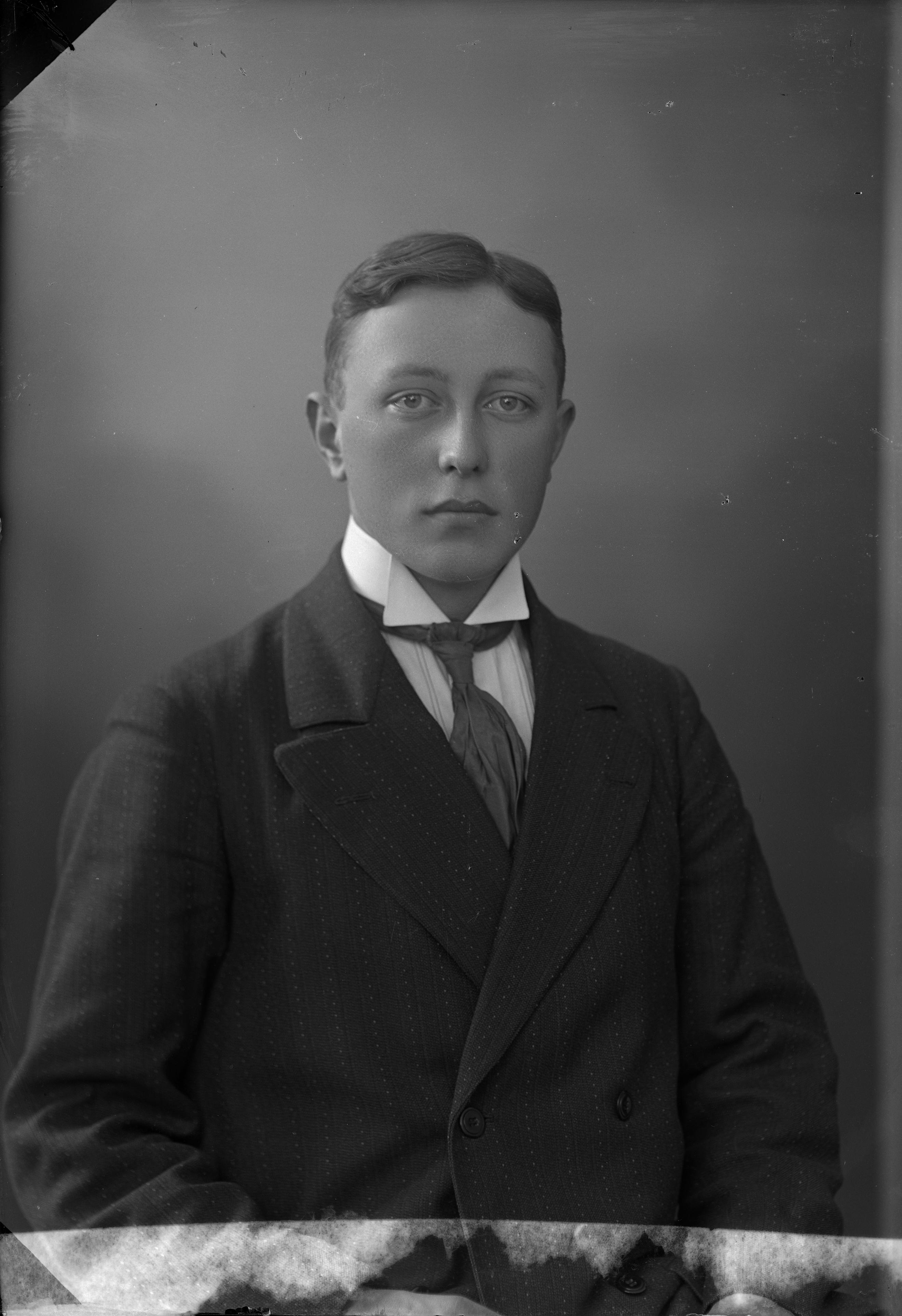 Porträtt i halvfigur av Viktor Westerlund, son till byggnadsarbetare Nils Westerlund (1862-1953).