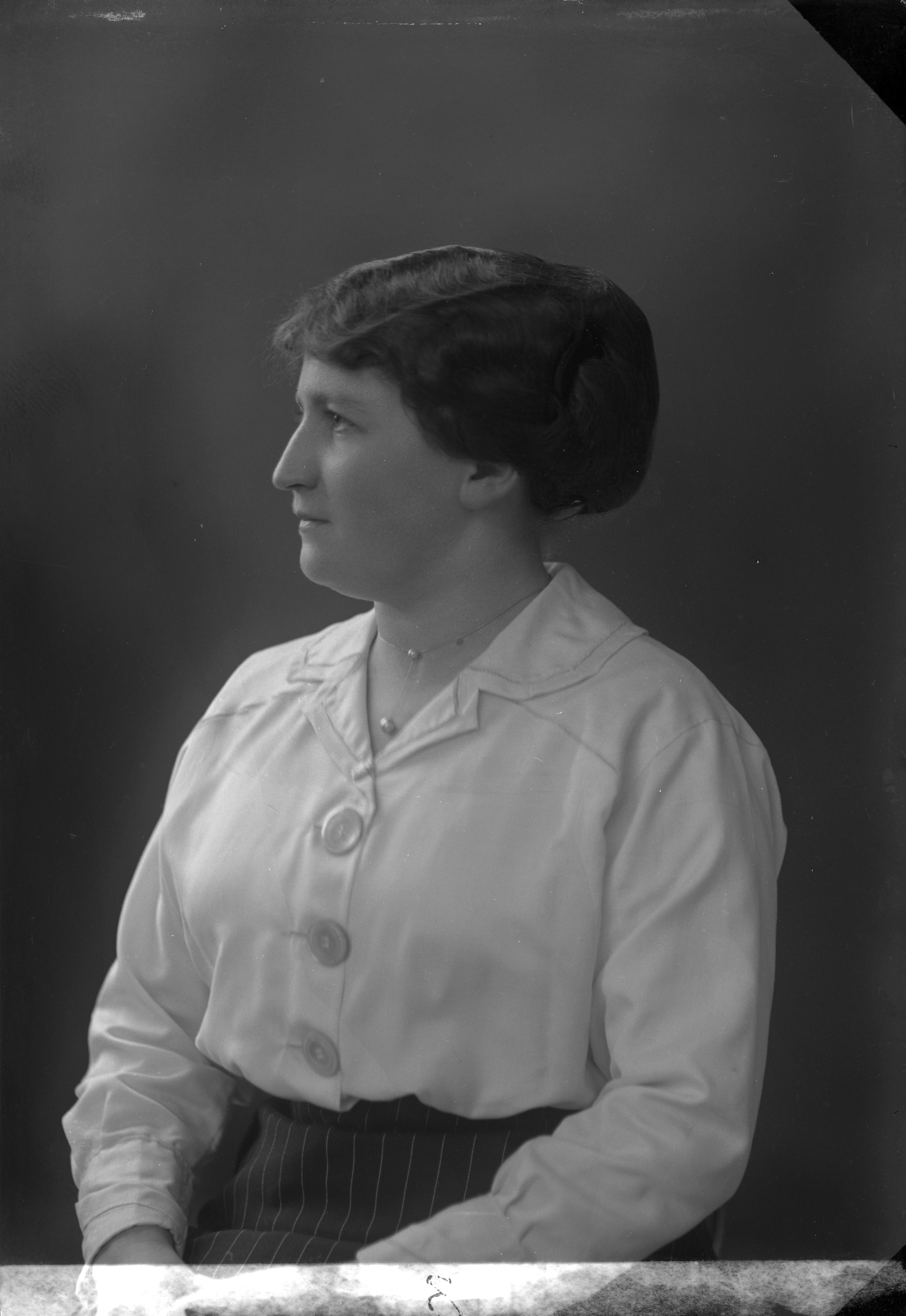 Porträtt i halvfigur av Elin Ström, ansikte i profil.