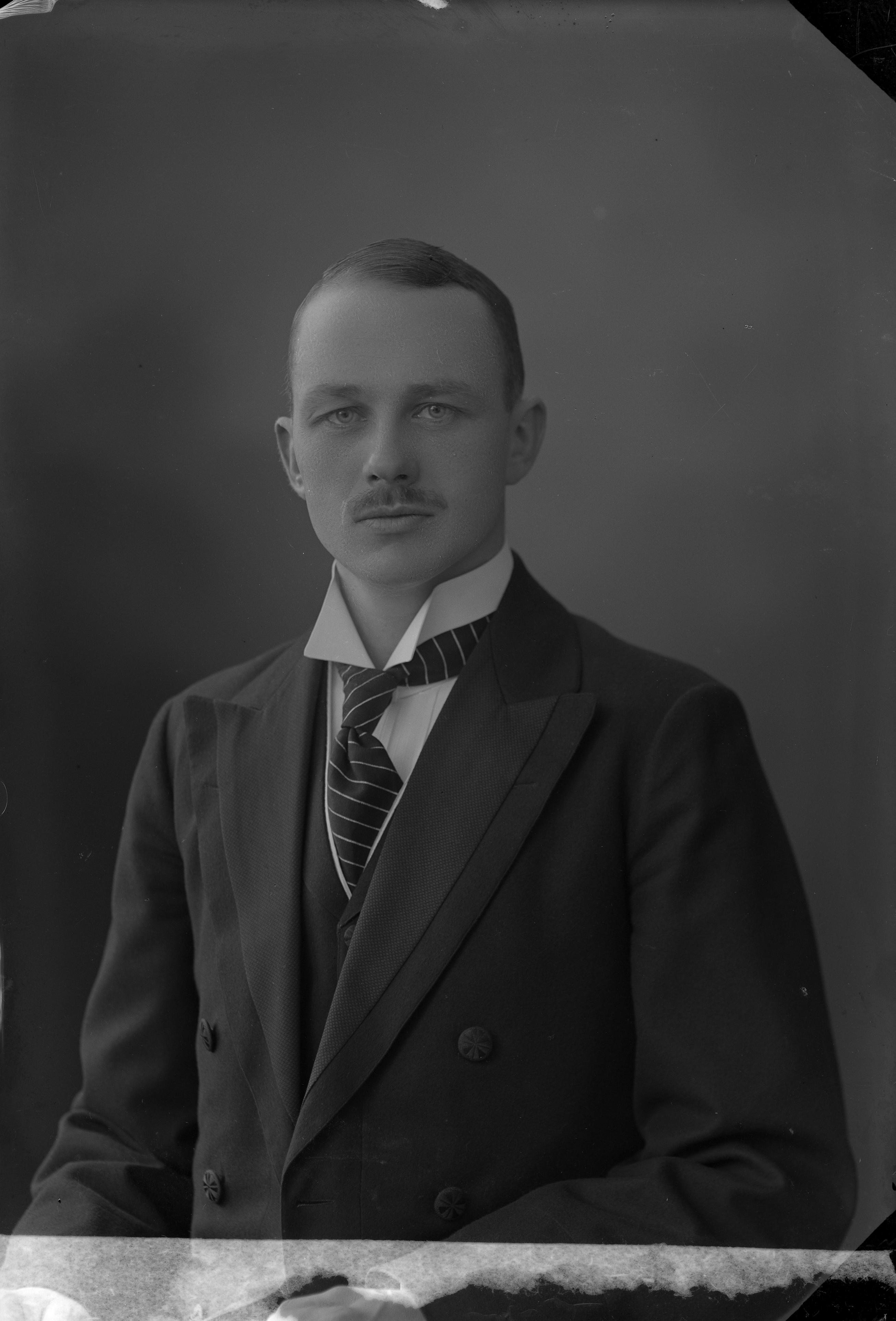 Beskrivning: Porträtt i halvfigur av förvaltare Hjalmar Nilsson.