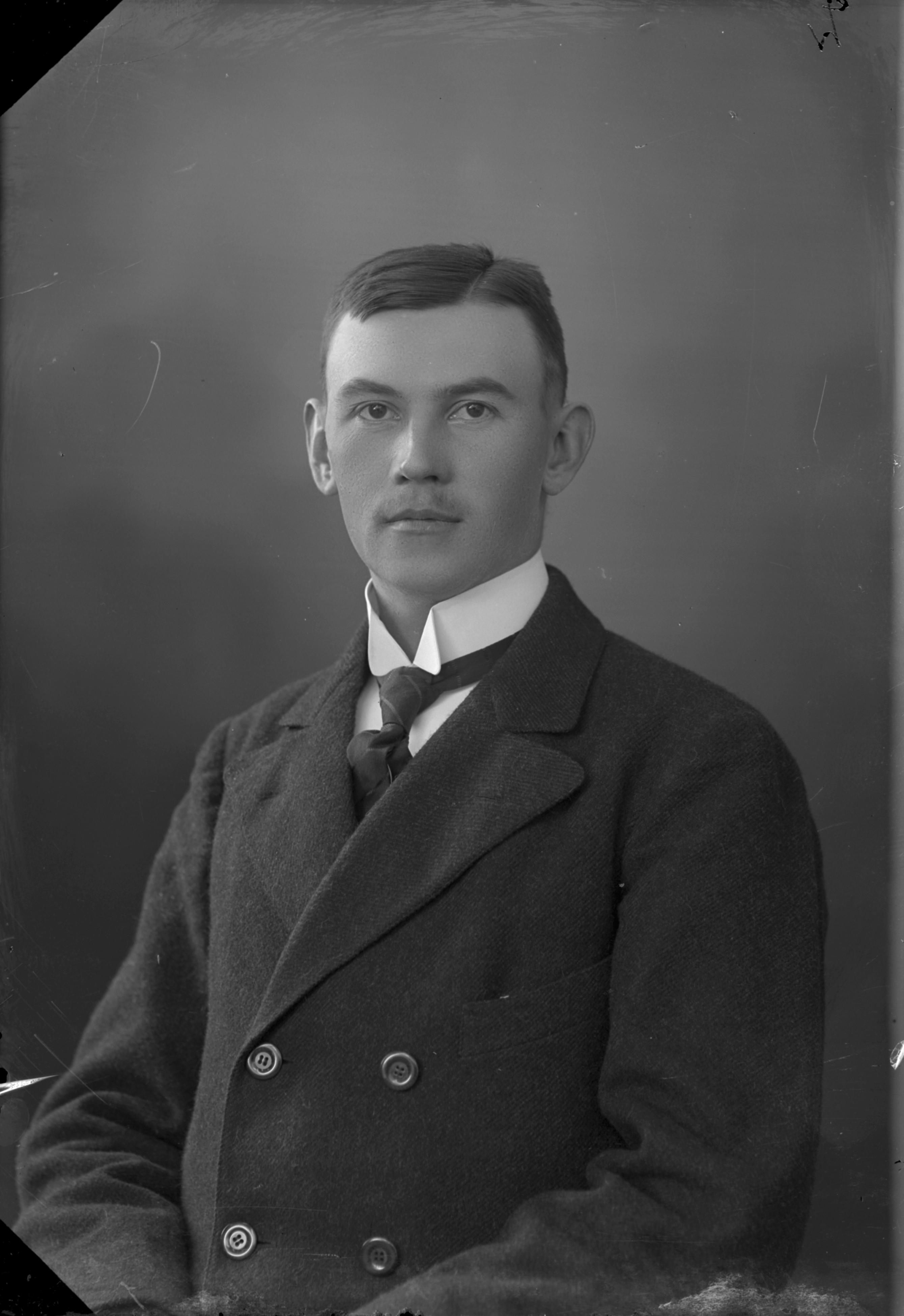 Beskrivning: Porträtt i halvfigur av Sigfrid Nilsson.