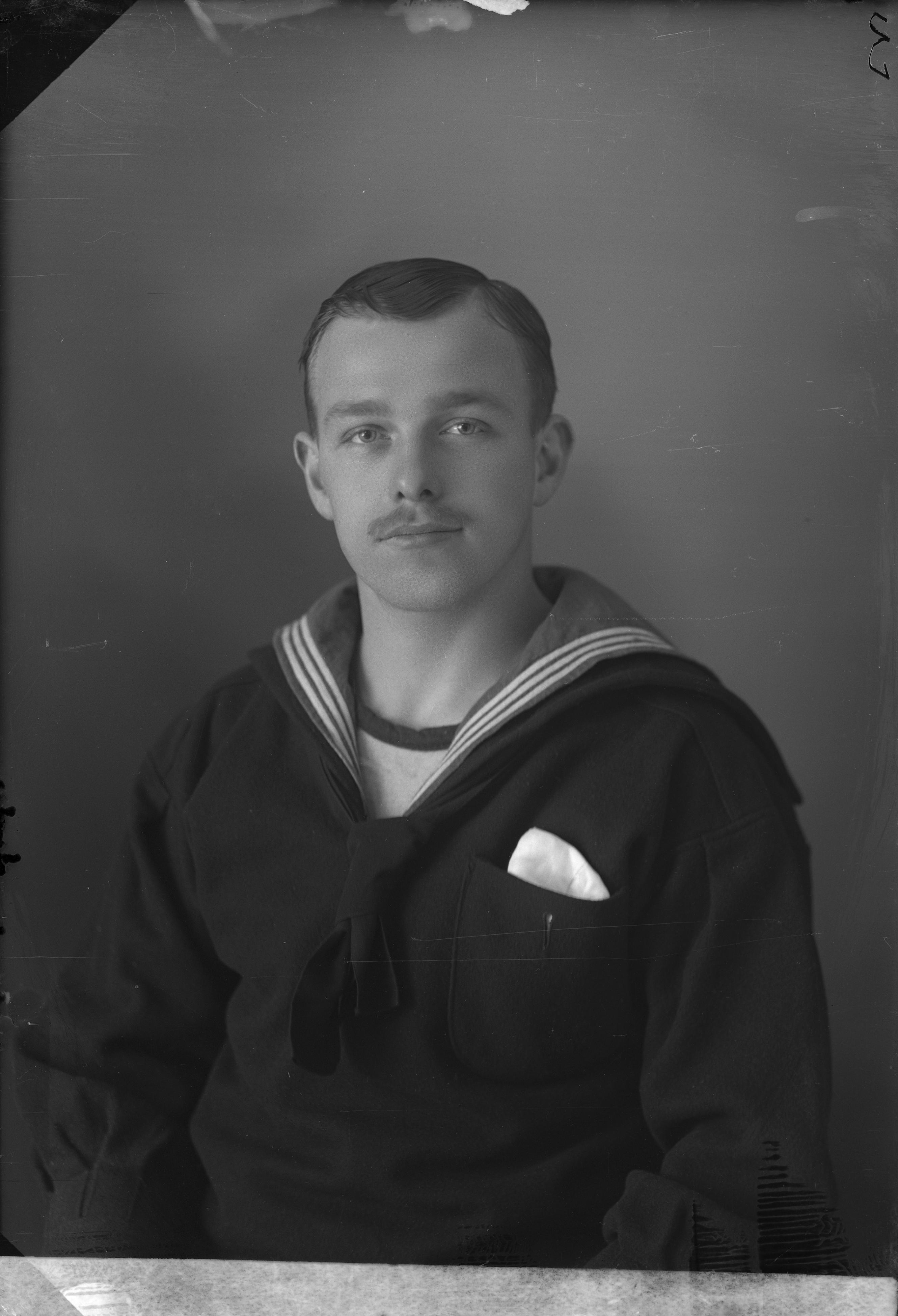 Beskrivning: Porträtt i halvfigur av oidentifierad sjöman.