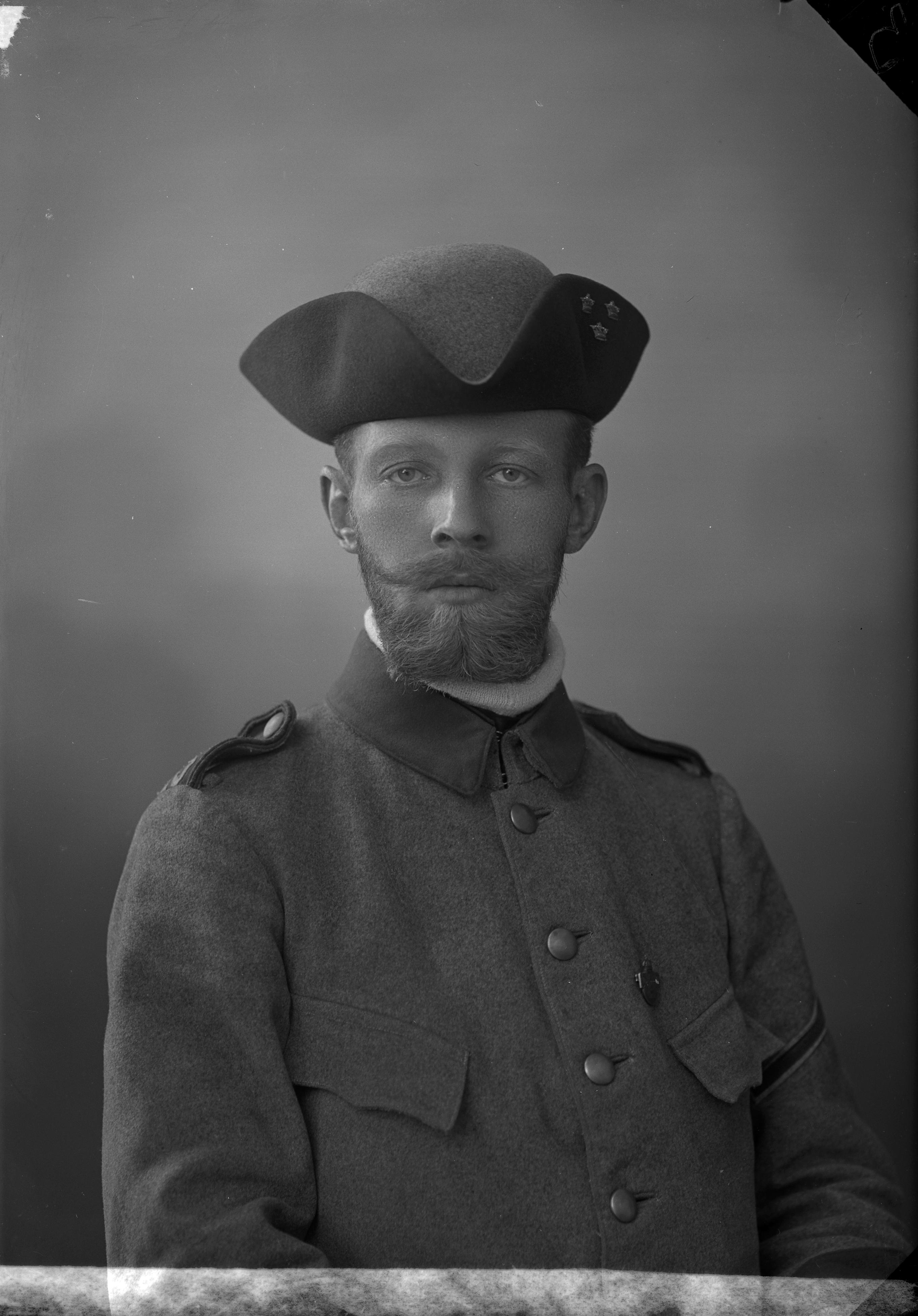 Beskrivning: Porträtt i halvfigur av Ing. Regnell i militäruniform. [Ingemar /Ingvar?]