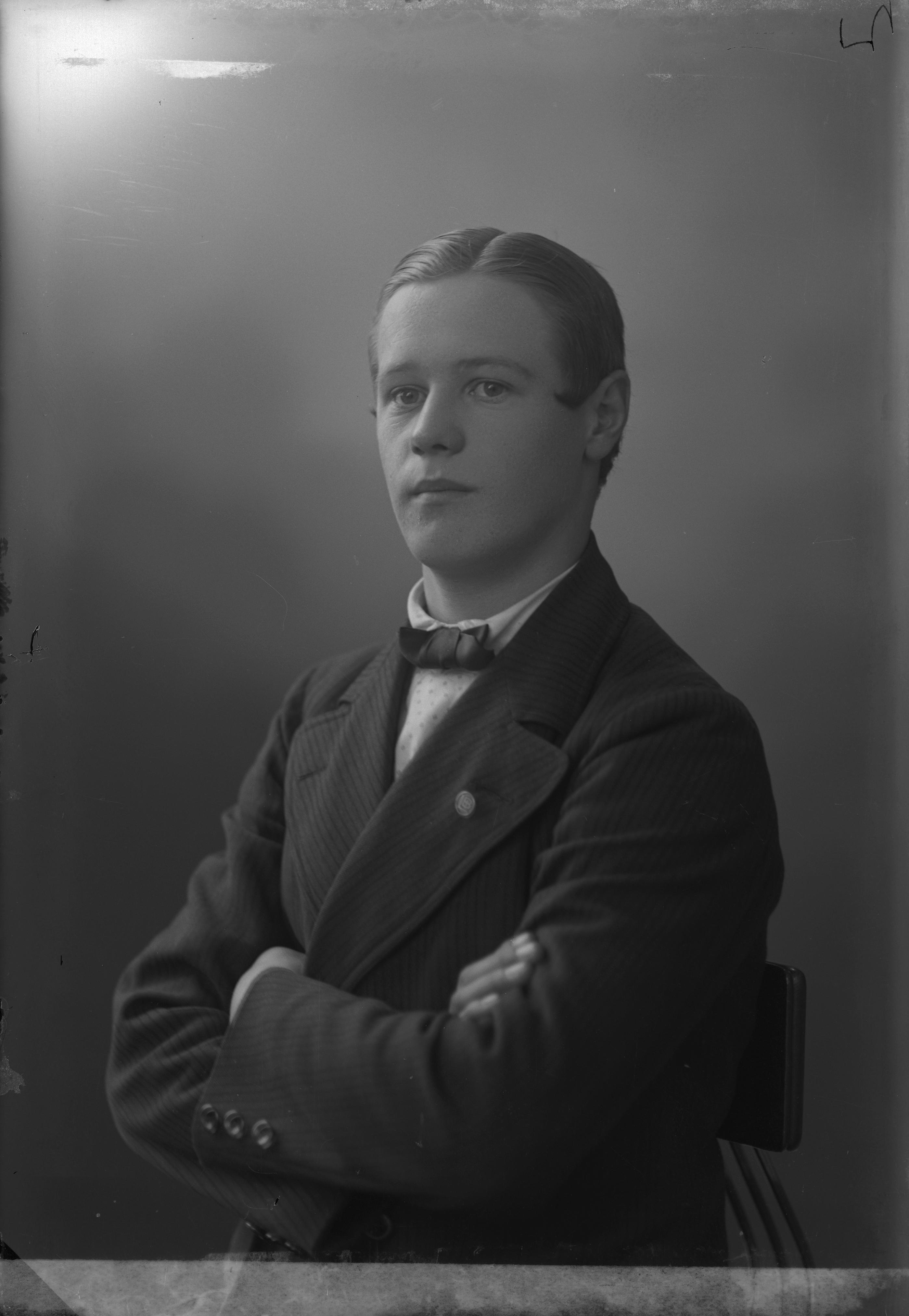 Beskrivning: Porträtt i halvfigur av Axel Larsson.