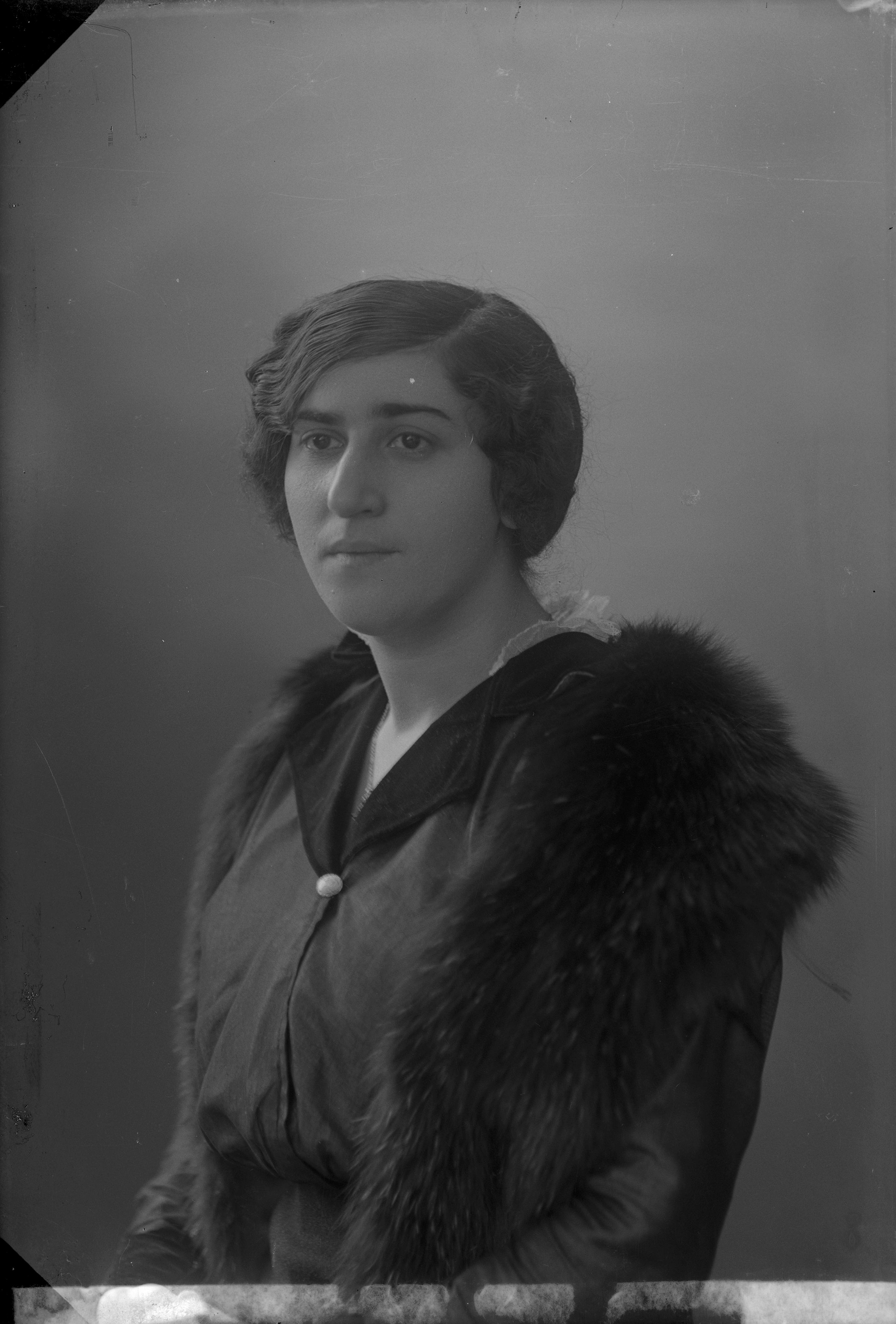 Beskrivning: Porträtt i halvfigur av fröken Tschaikow.