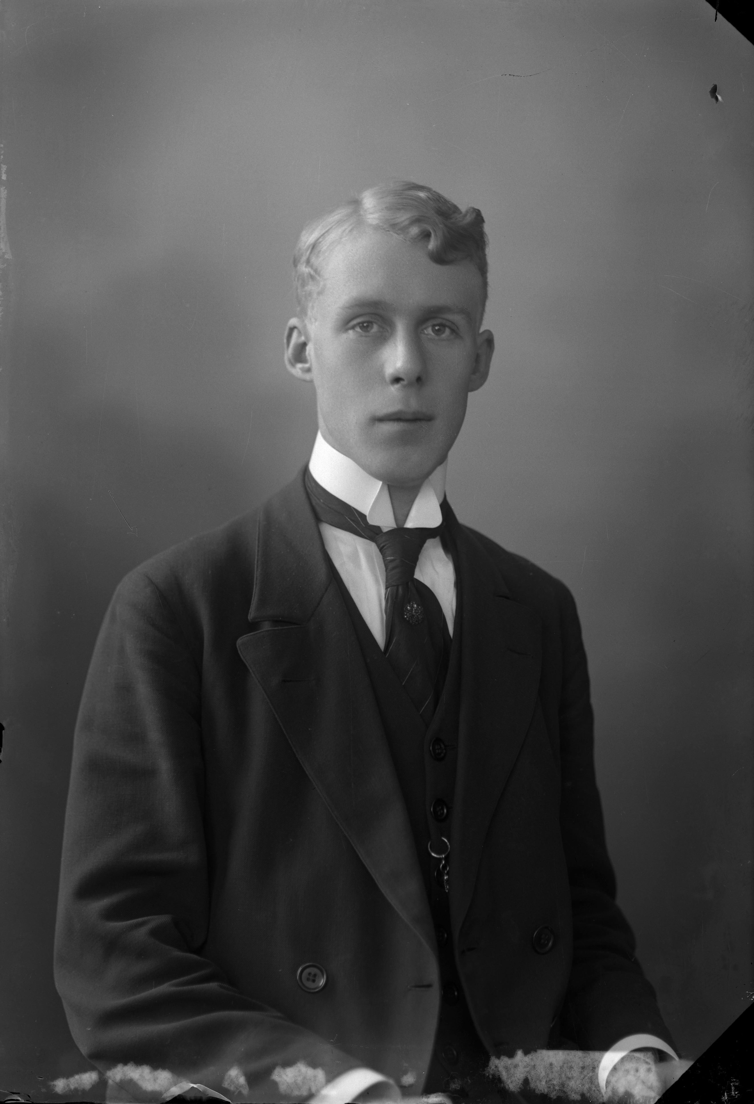 Beskrivning: Porträtt i halvfigur av styrman Hallengren.