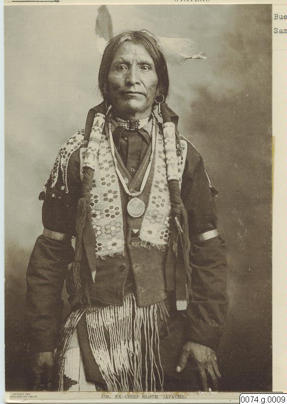 Apache, man. Ex-hövding. Copyright 1902 by Buedingen Art Pub Co. 1335. Ex-chief Elote