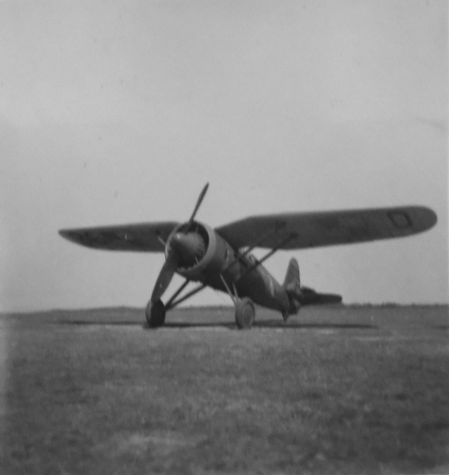 Polskt jaktflygplan PZL P.11 uppställt på flygfält i Sverige, omkring 1934-1937.