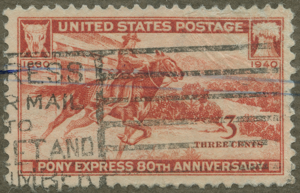 Frimärke från U.S.A., 1940. Motiv av Expresspost till häst i Amerika. 80-årsminne av dess införande. 1860-1940.