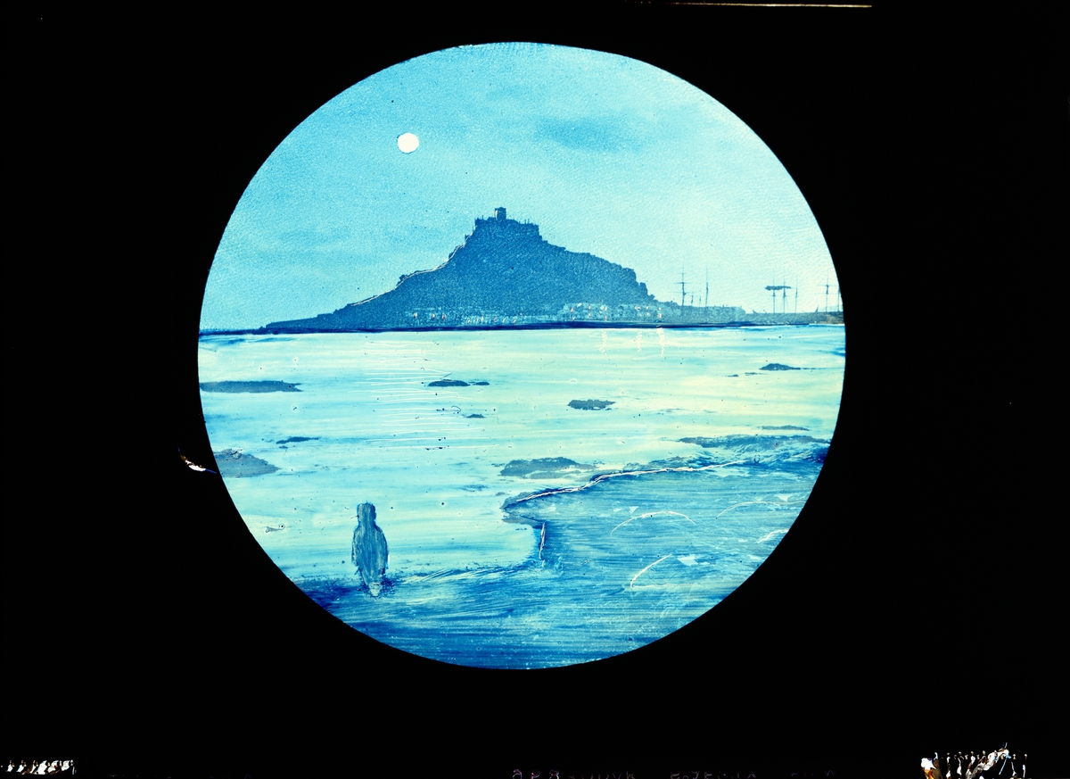 Skioptikon målad i färg på glasskiva.