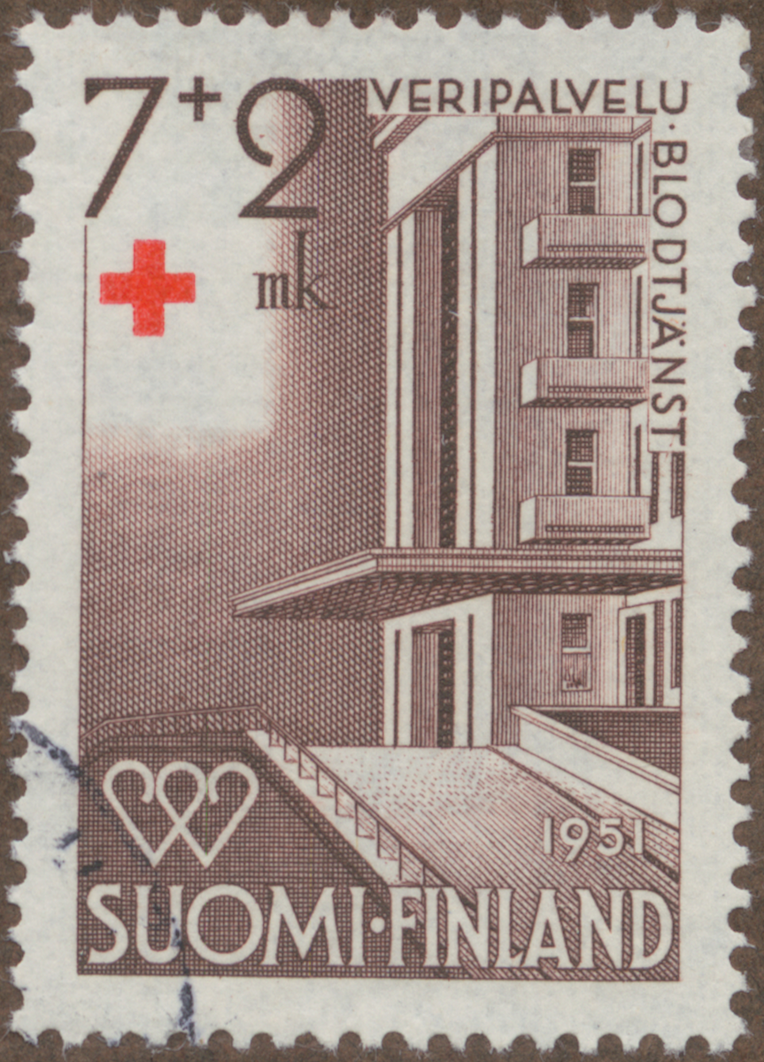 Frimärke från Finland, 1951. Motiv av Blodtjänst "Serie: Röda Korset"