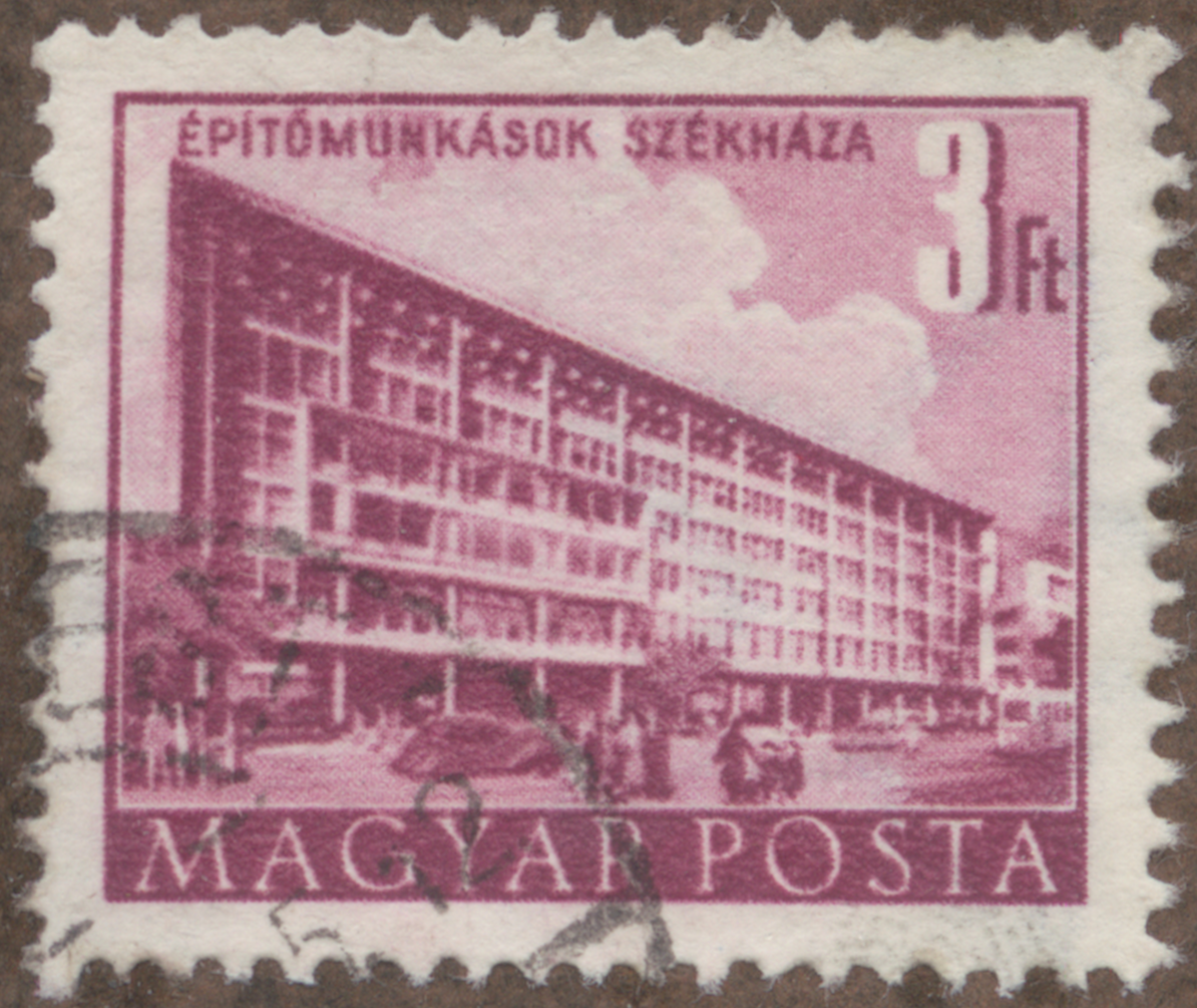 Frimärke från Ungern, 1951. Motiv av Byggnadsstyrelsens Centralkontor i Budapest "-Återuppbyggnadsserie-"