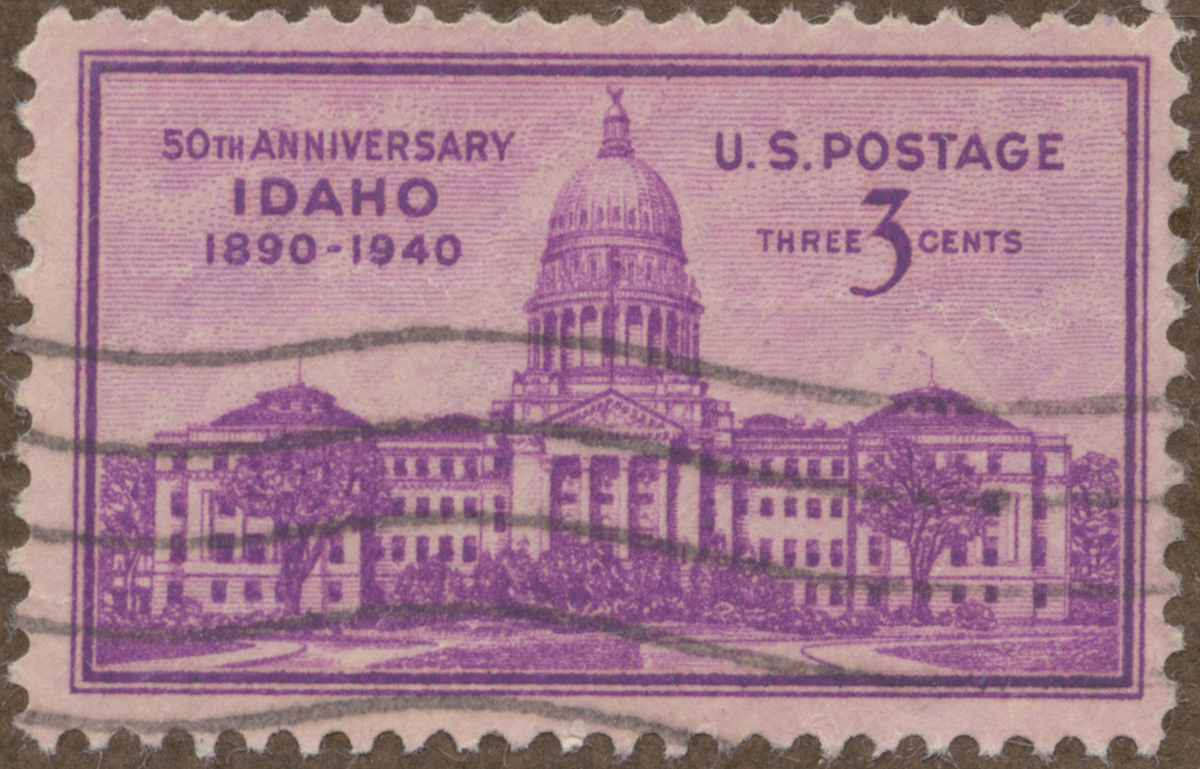 Frimärke från U.S.A., 1940. Motiv av Idahos Capitolium Staten Idaho 50 år: 1890-1940.