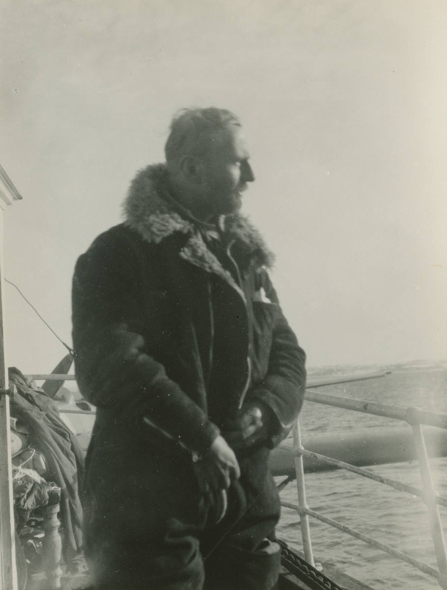 Fotografi från svenska undsättningsexpeditionen 1928. Motiv av Einar Lundborg ombord på skepp.