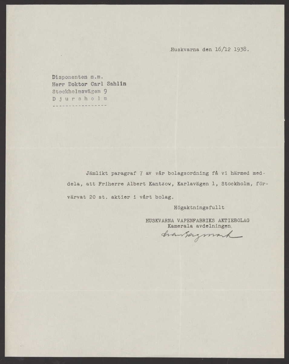 Titel: Husqvarna vapenfabriks kronologi. Ur Carl Sahlins bergshistoriska samling.