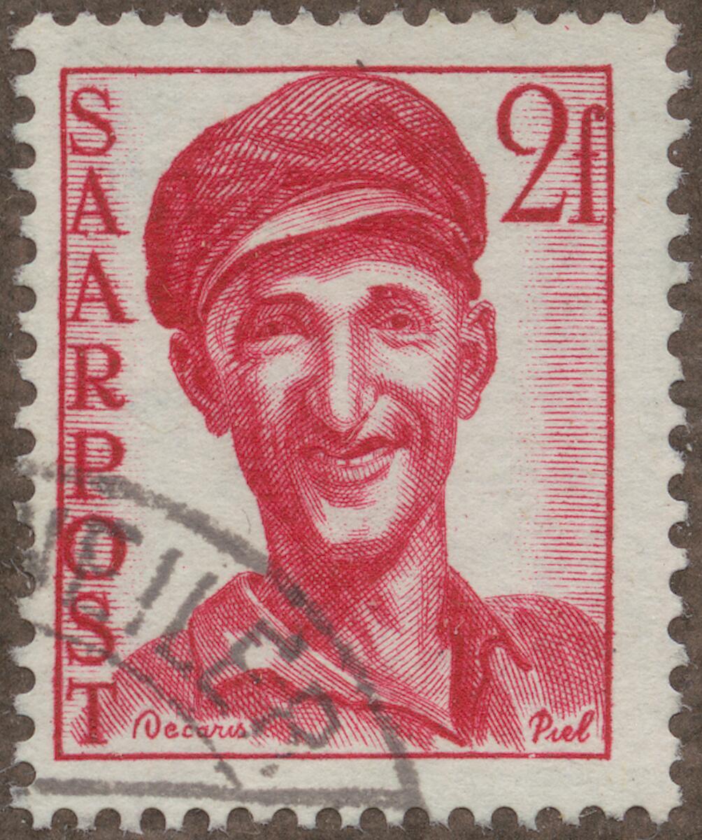 Frimärke från Saar, 1948. Motiv av Järnarbetare i Saar