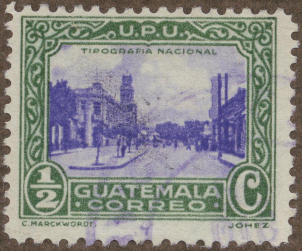 Frimärke från Guatemala, 1936. Motiv av Nationaltryckeriet Guatemala