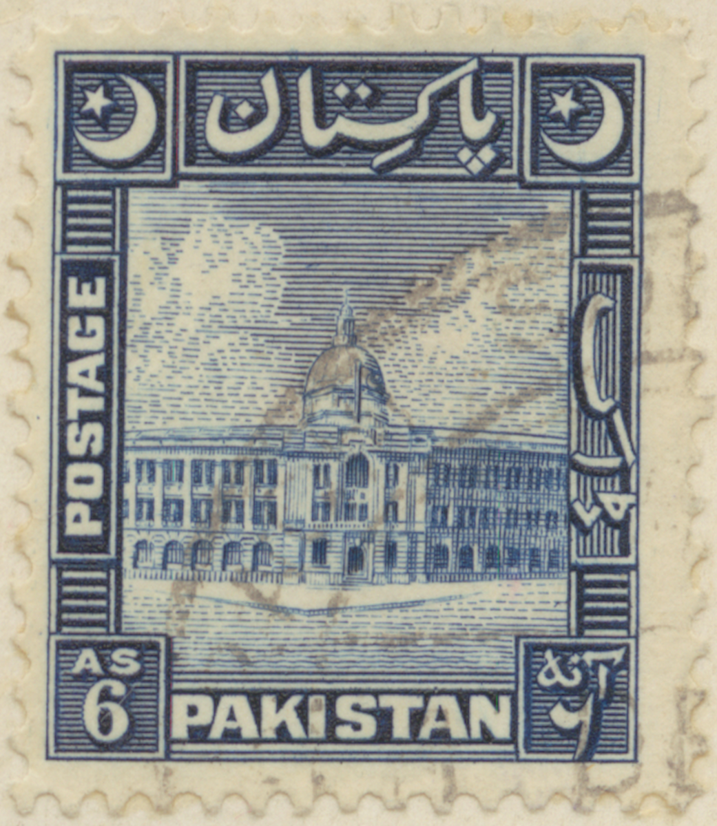 Frimärke från Pakistan, 1919. Motiv av Offentlig Byggnad: Administrationsbyggnaden i Karachi Flyghamn-