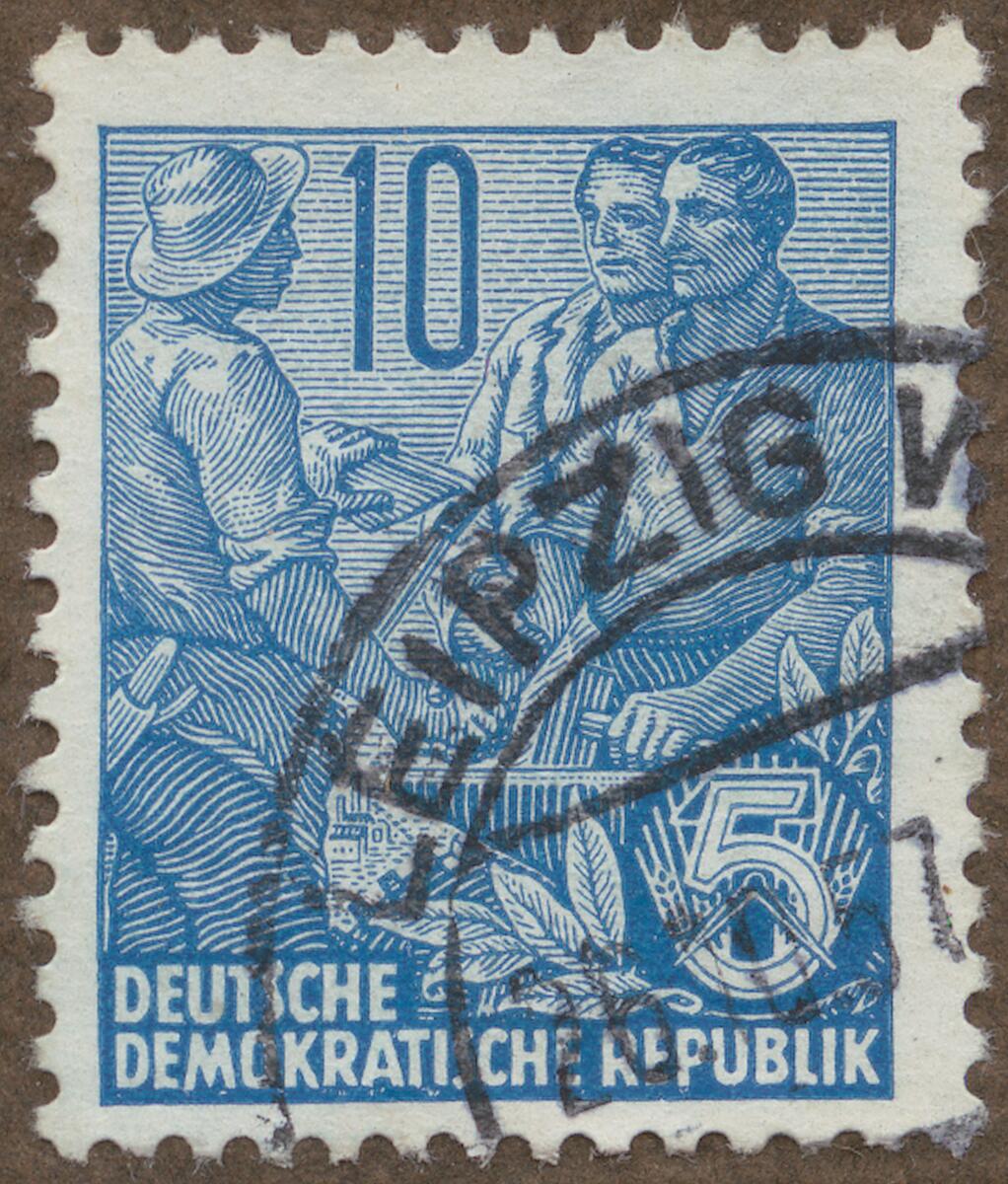 Frimärke från Öst Tyskland, 1959. Motiv av Verkstadsarbetare. 5-årsplanen -Propagandamärke-
