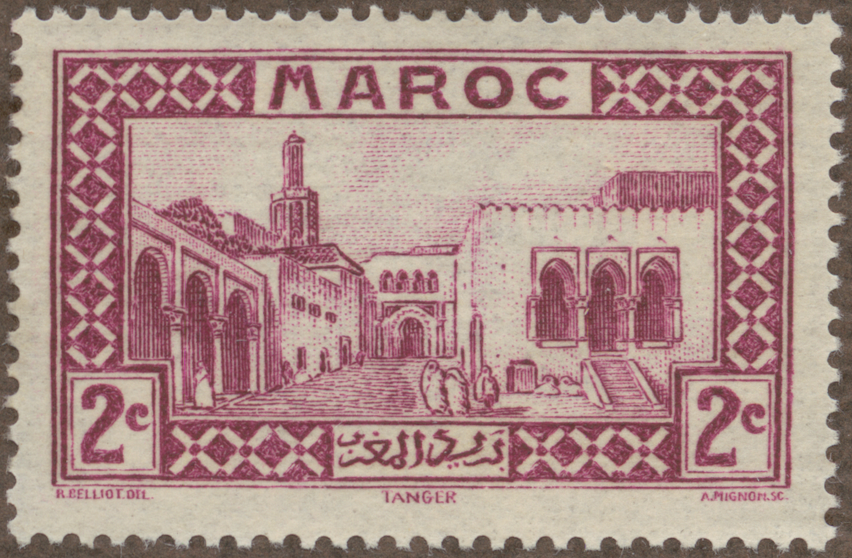 Frimärke från Franska Marocko, 1933. Motiv av Sultanens gamla palats Tanger