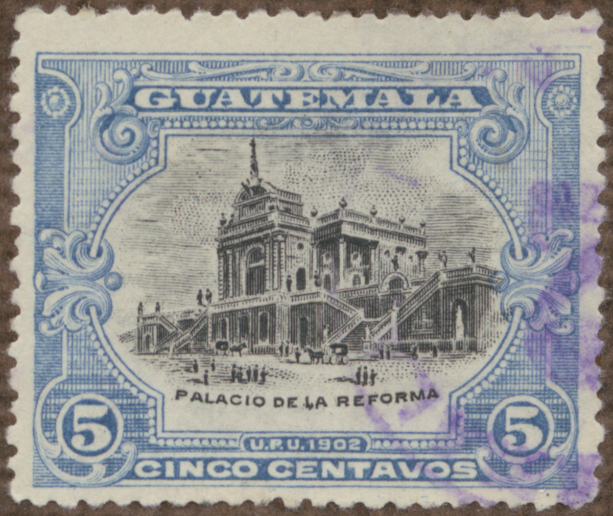 Frimärke från Guatemala, 1902. Motiv av Palacio de la Reforma Guatemala