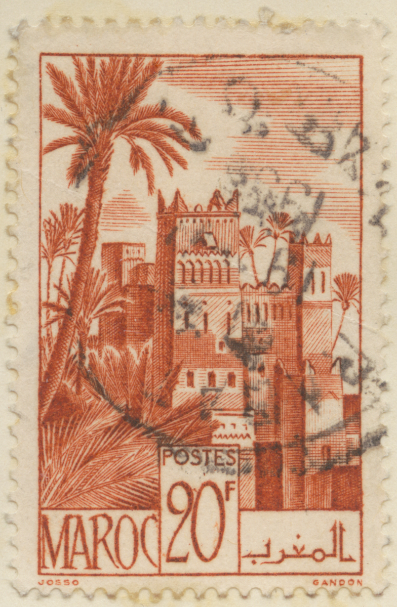 Frimärke från Franska Marocko, 1947. Motiv av Södra Kasbak d´Quarzazat