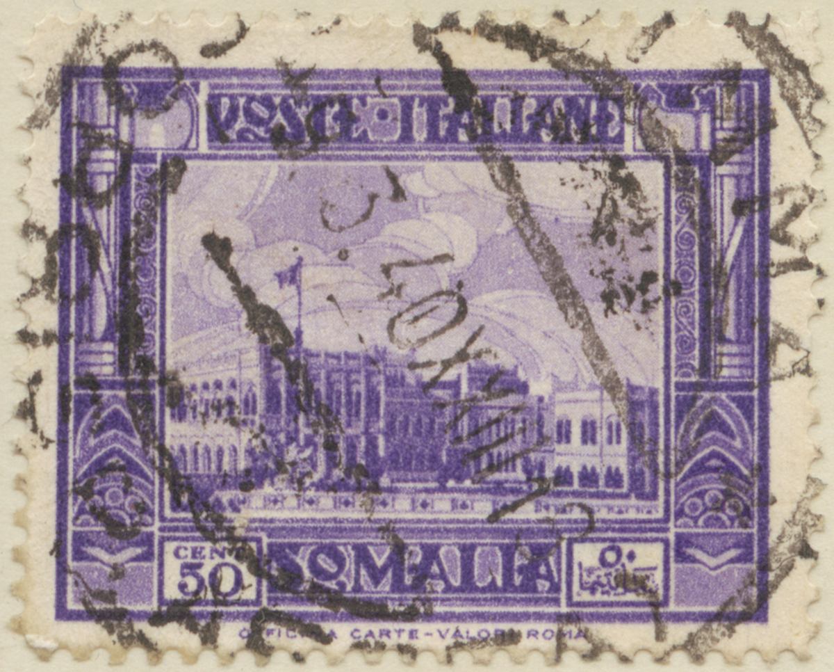 Frimärke från Somaliland, 1932. Motiv av Residenset i Mogadiscio