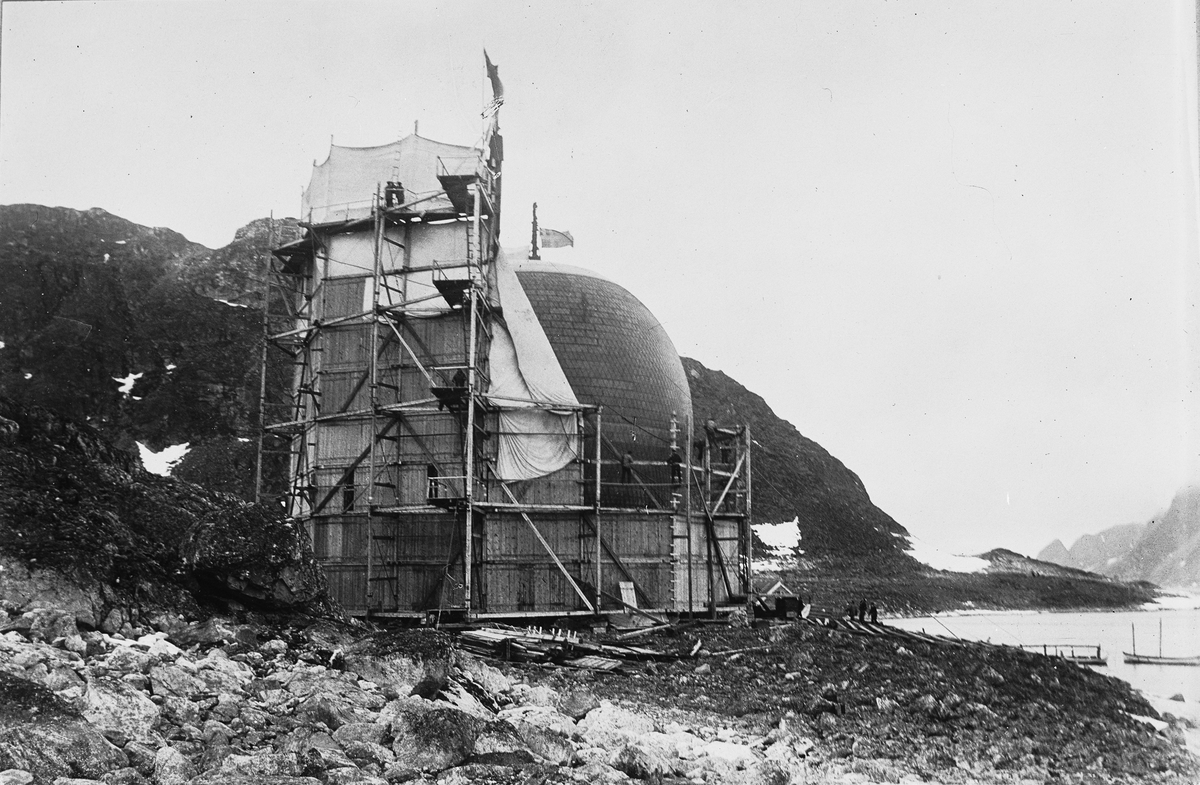 Ballonghuset till S.A. Andrées ballong under uppförande på Spetsbergen.