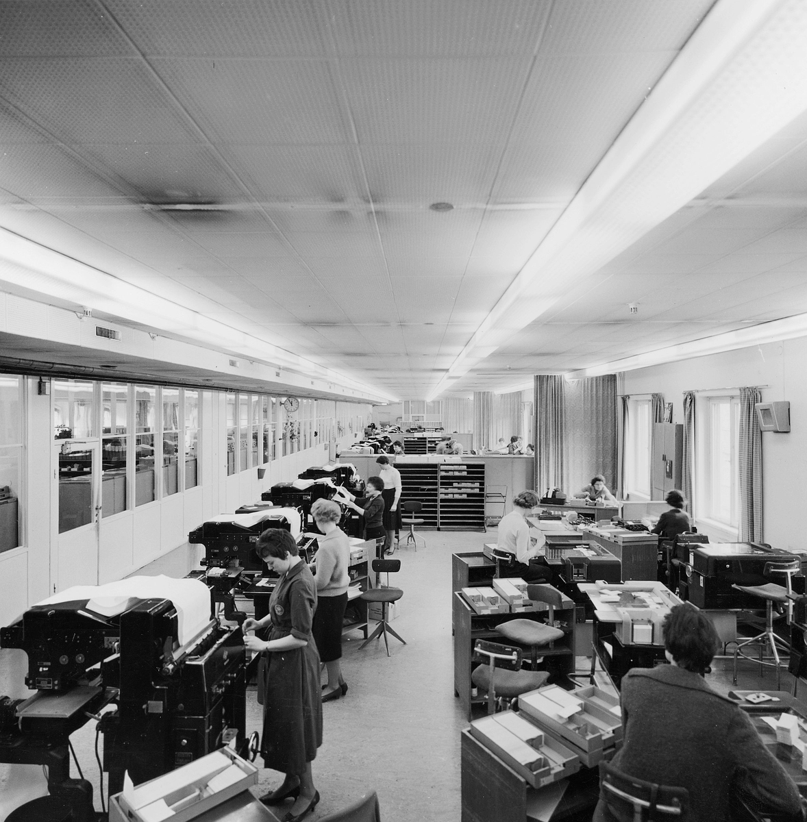 Titel: Postsparbankens hålkortsbokföring, på 4 tr. Lokaler utmed Klara Norra Kyrkogata. (T.h. fönster åt Klara Norra Kyrkogata).