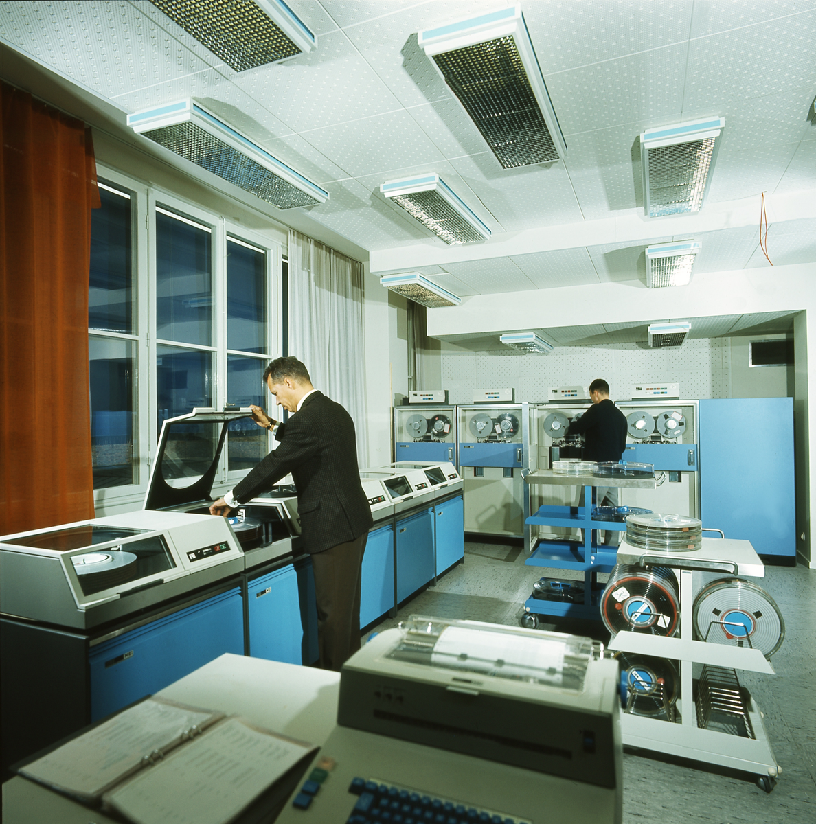 Interiör av den nya dataanläggningen på Postgirots datacentral, i våningen 4 tr, i Postgirohuset, Stockholm.