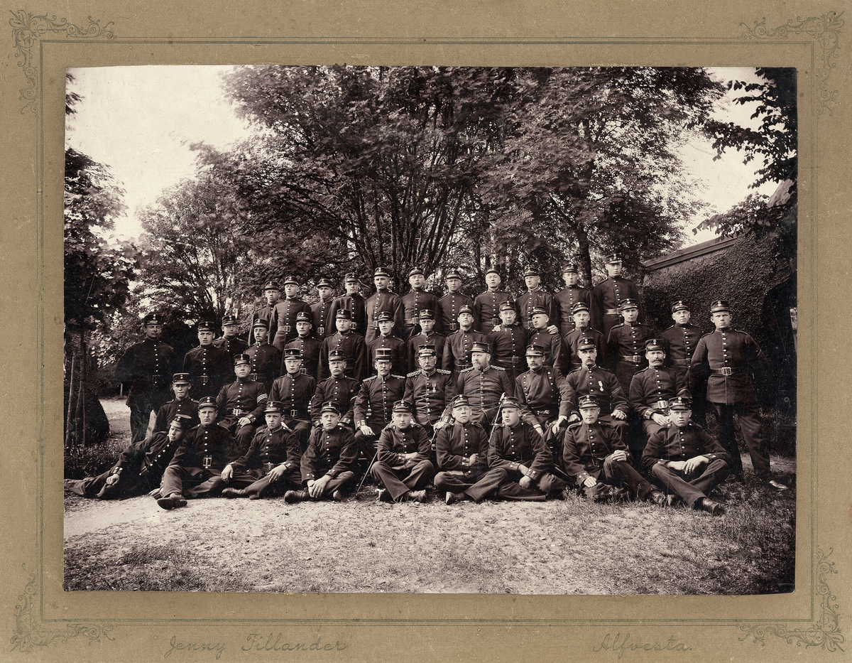 Meniga och officerare vid Kronobergs regemente har samlats för ett gruppfoto.