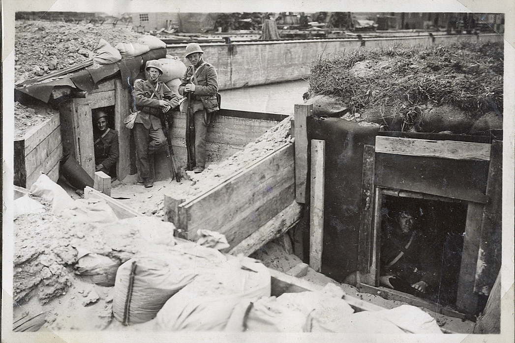 Några meniga i ett nybyggt skyttevärn utanför Malmö.