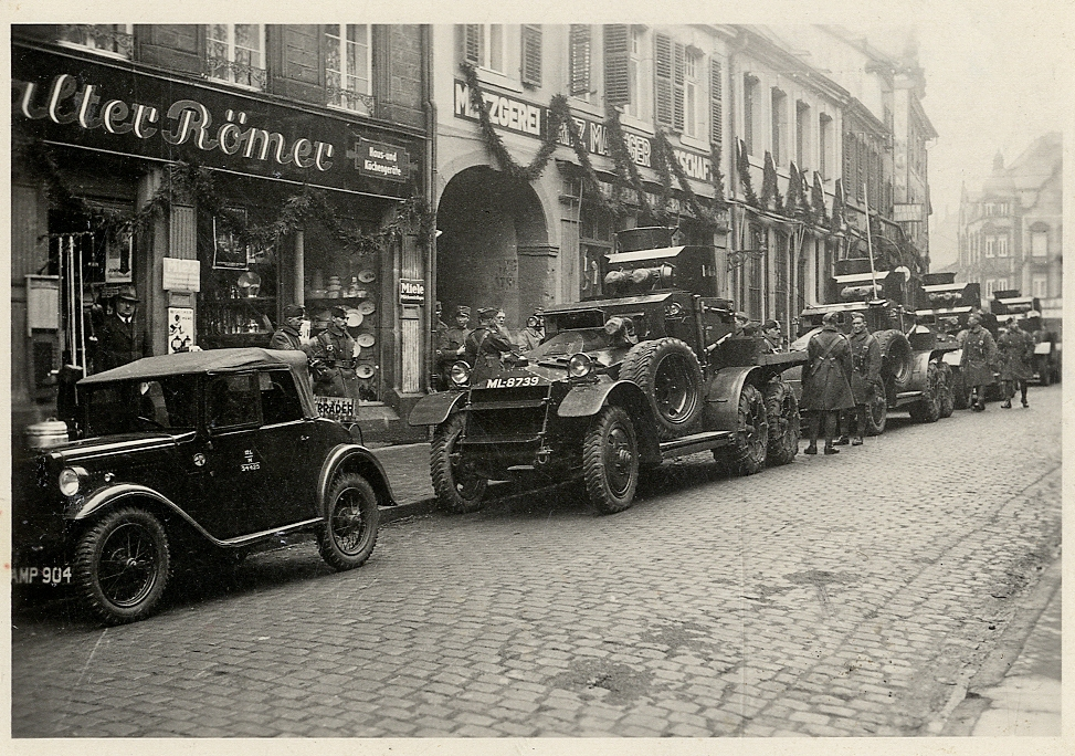 Engelsk pansarbilspluton i Merzig, vid I11:s förläggning.