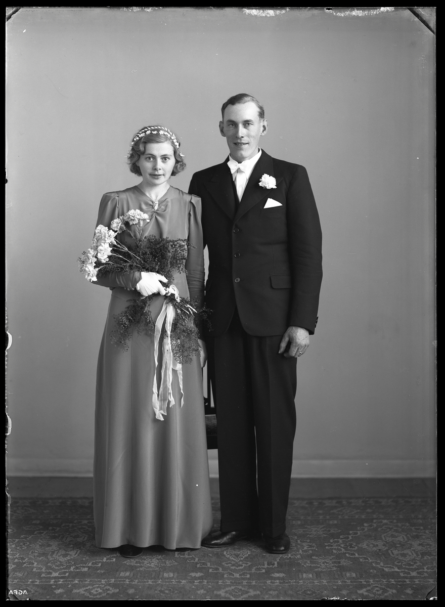 Bröllopsporträtt, brudpar. Viktor Burman, Årby, Kolbäck.