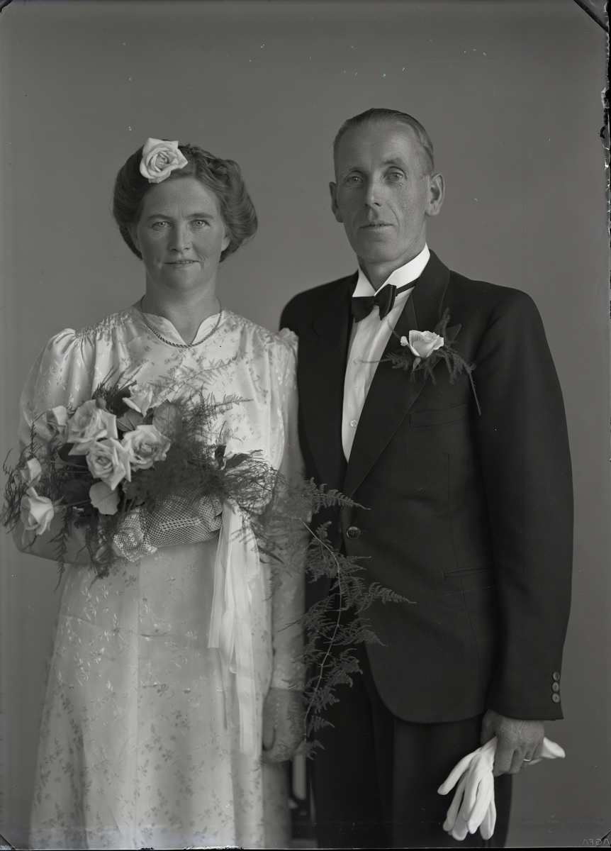 Bröllopsporträtt, brudpar. Arnhold Sevelin, Angesdal, Hallstahammar.