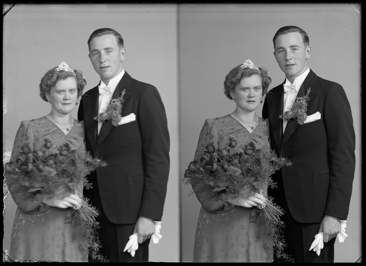 Bröllopsporträtt, brudpar. Allan Öberg, Vänsta, Kolbäck.