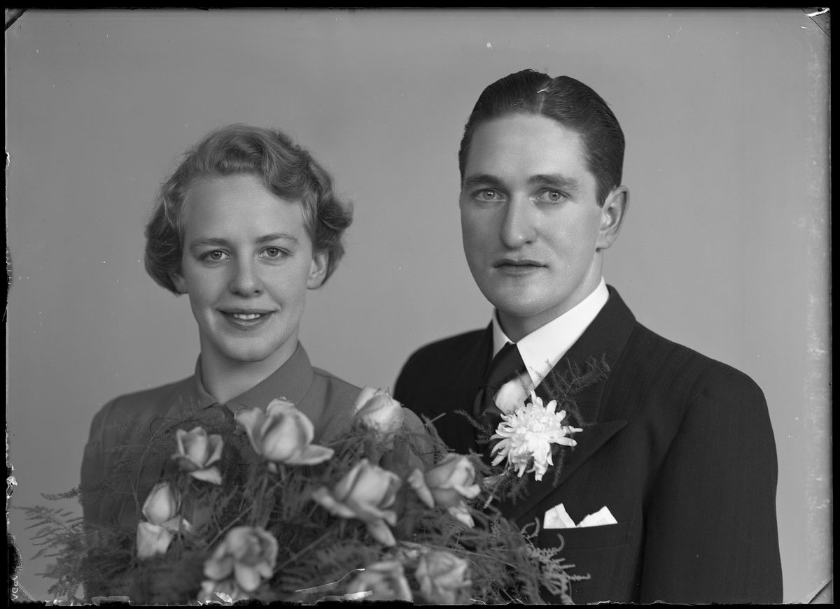 Titel: Brudpar. Kalle Bohm, Svea 1, Hallstahammar. Ur Gustaf Åhmans samling.