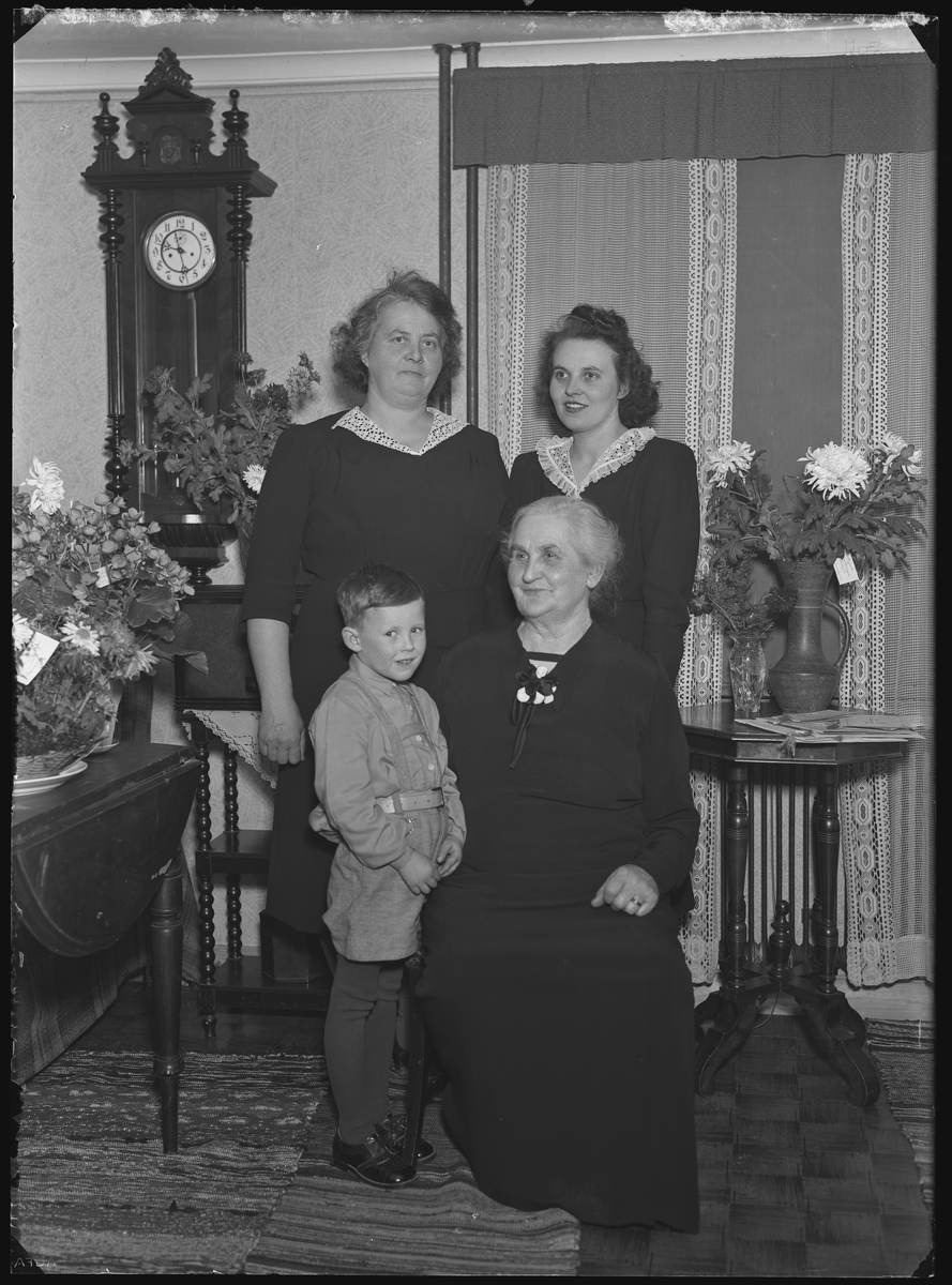 Grupporträtt, fyra personer, 70-års firande. Fru Hanna Pettersson. Ur Gustaf Åhmans samling.