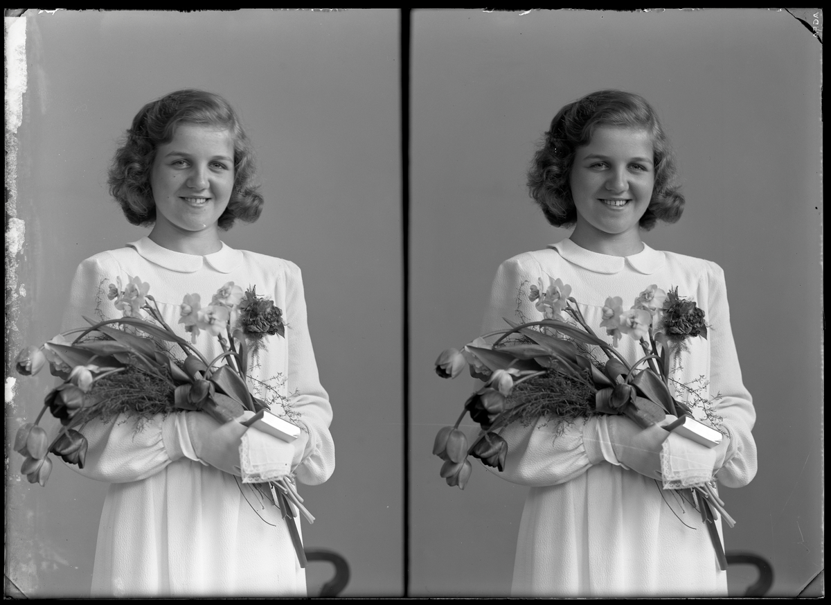 Porträtt, läsfoto. Gerd Hjelm, Borgby, Kolbäck.