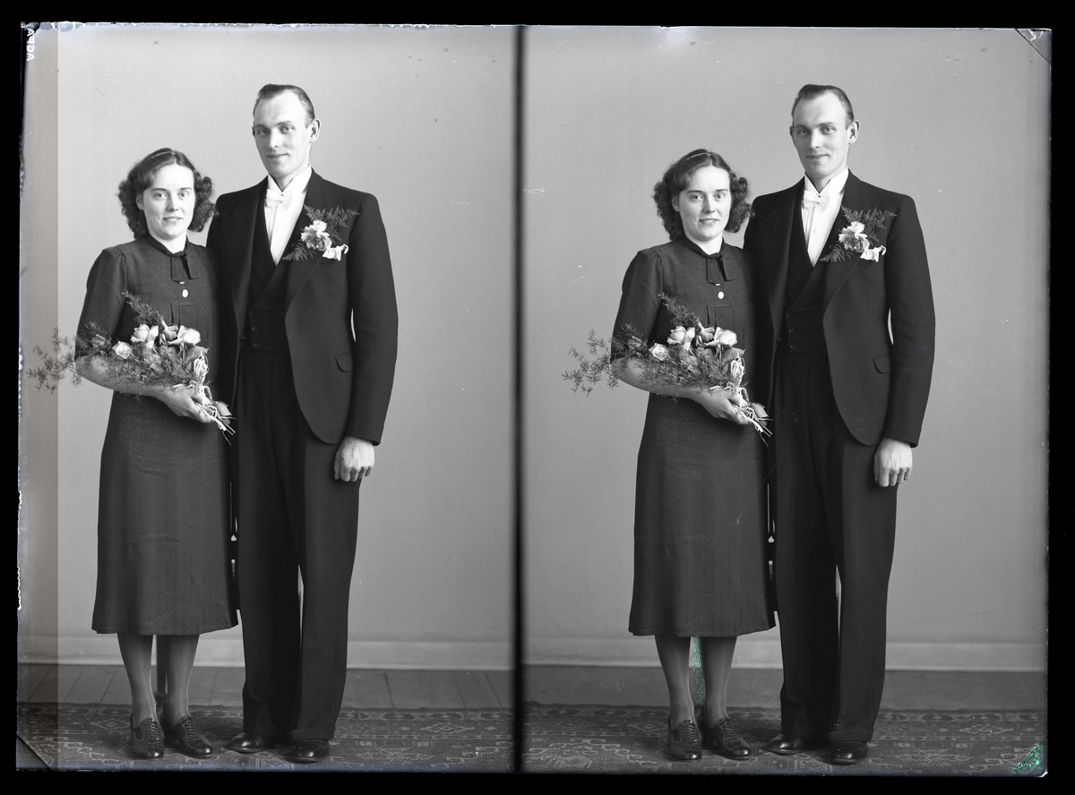 Bröllopsporträtt, brudpar, Nils Karlsson, Kolbäck, (Arboga).